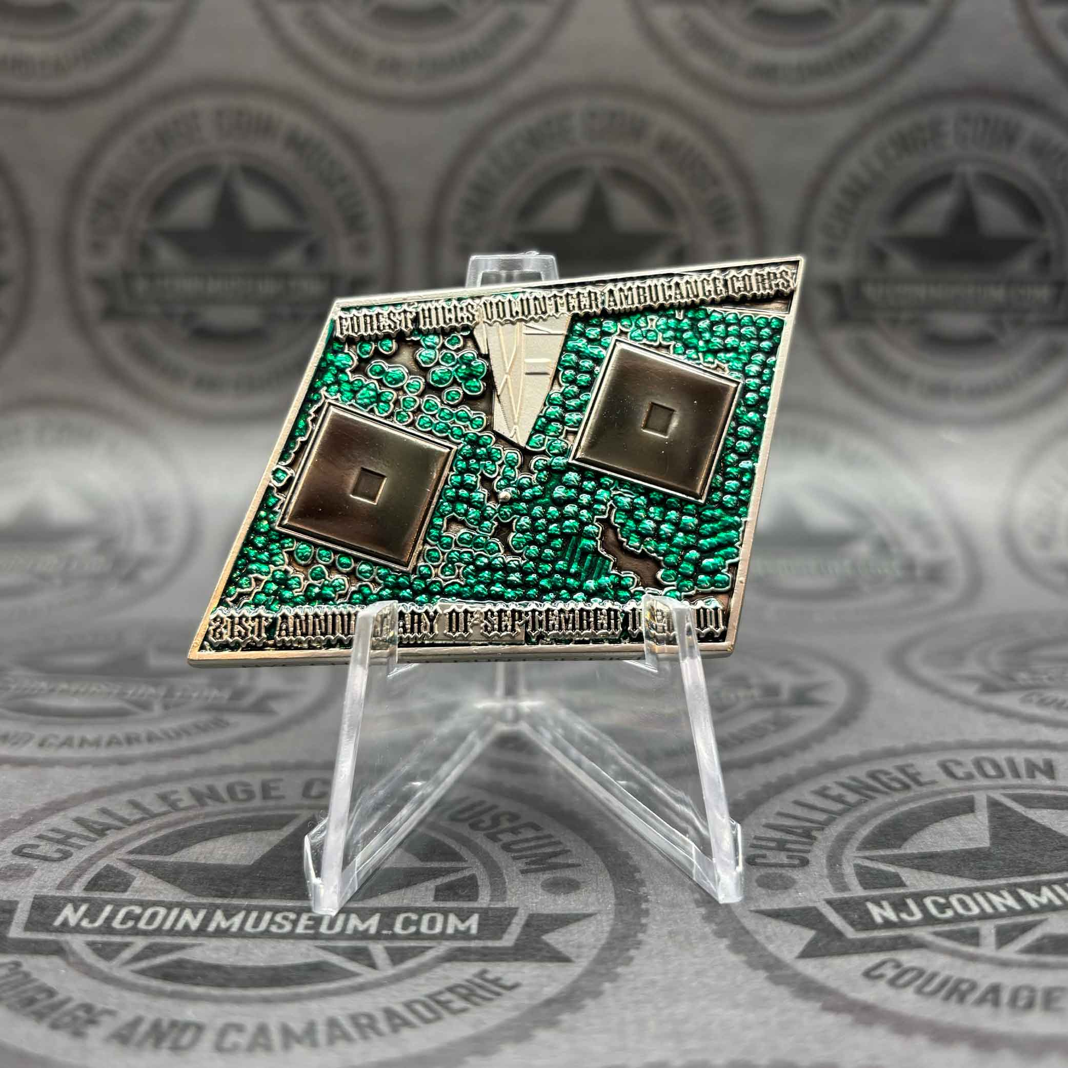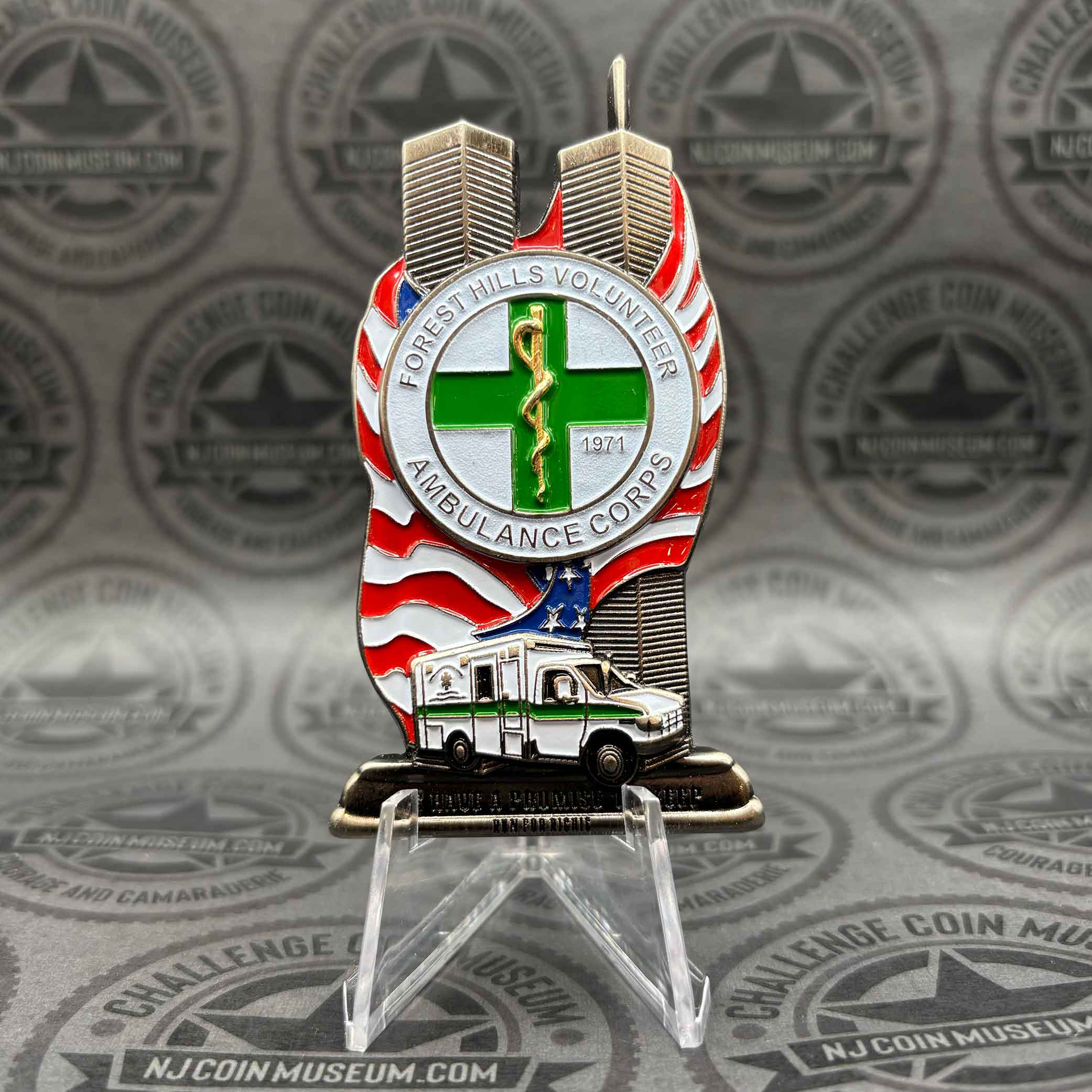 The Forest Hills Volunteer Ambulance Corps 21st Anniversary of 9/11 challenge coin honors the dedication and sacrifice of the volunteers who answered the call in the wake of September 11th and continue to serve their community with unwavering commitment. We invite you to stop in anytime and see this Beautiful Museum! Click HERE for hours