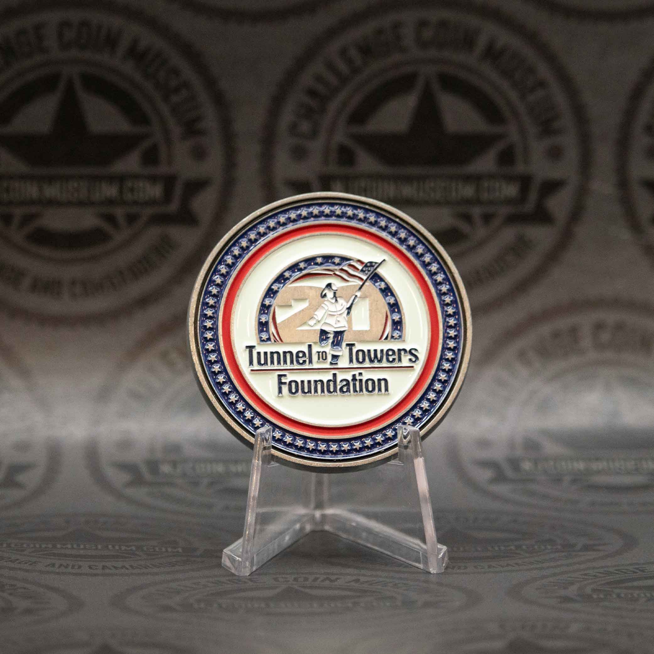 The Tunnel to Towers Foundation 20-Year Anniversary Challenge Coin commemorates two decades of unwavering dedication to honoring America’s heroes. The coin pays tribute to the legacy of FDNY Firefighter Stephen Siller, who sacrificed his life on 9/11, and the countless first responders, military service members, and their families supported by the Foundation since. We invite