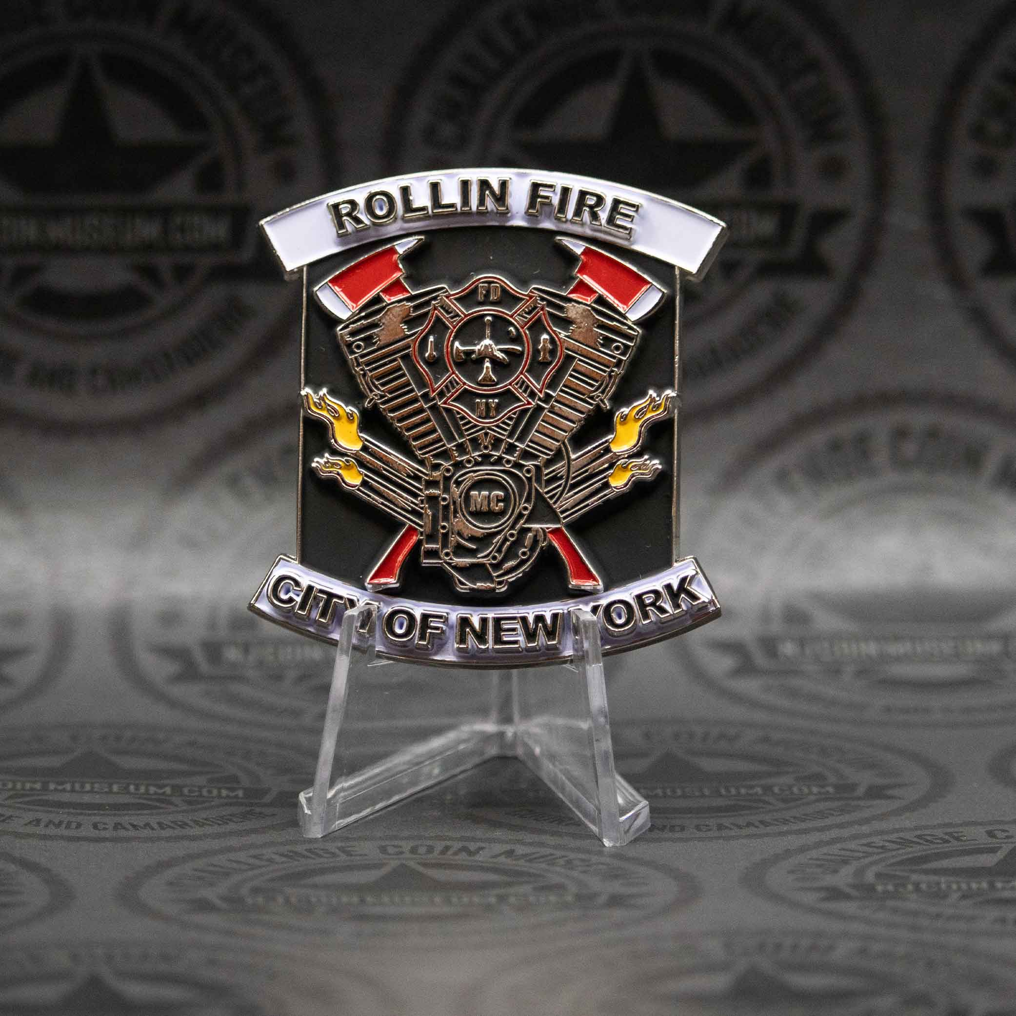 The FDNY Rollin Fire Motorcycle Club (Rollin Fire MC) proudly issues its own challenge coin as a symbol of brotherhood, service, and solidarity among firefighter members who share a passion for riding and community support. We invite you to stop in anytime and see this Beautiful Museum! Click HERE for hours and directions. Have a