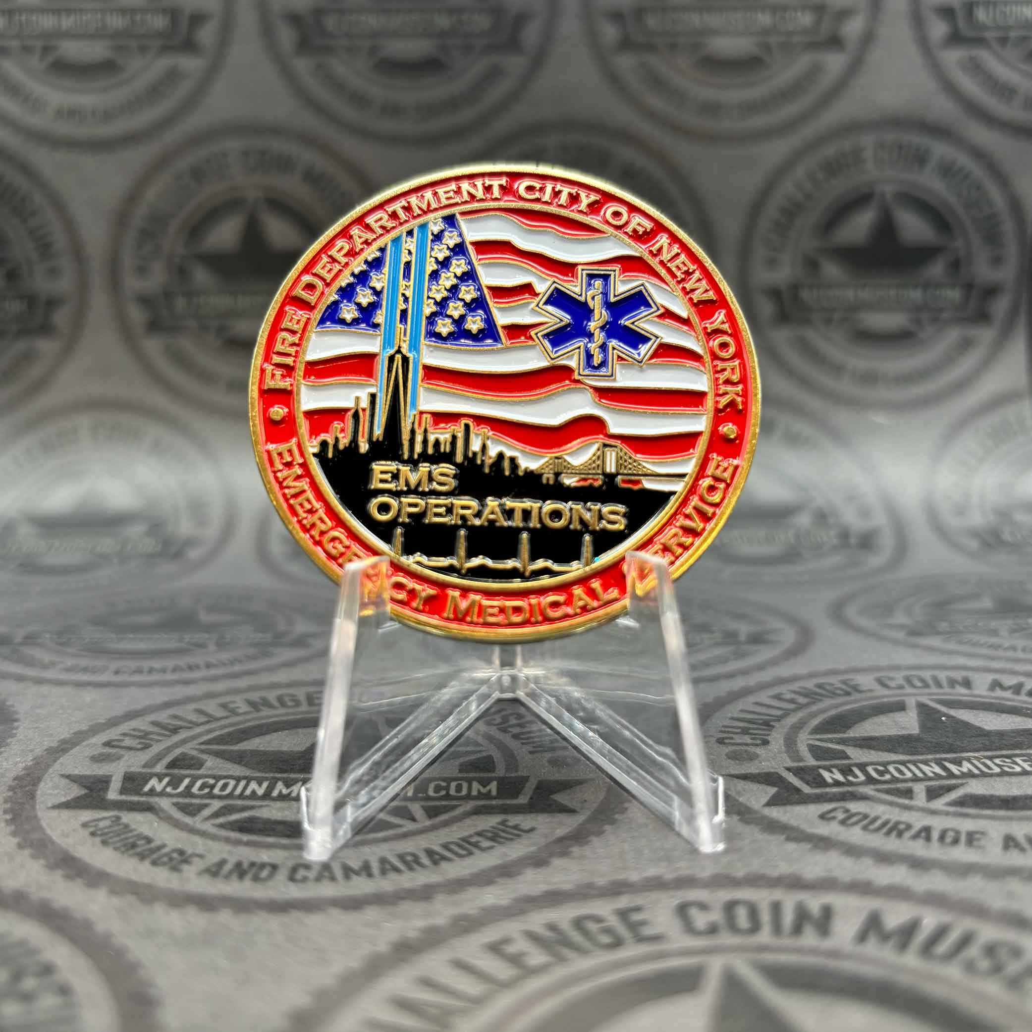 The FDNY EMS Operations challenge coin honors the courage, skill, and dedication of the emergency medical professionals who serve as New York City’s frontline in lifesaving care. We invite you to stop in anytime and see this Beautiful Museum! Click HERE for hours and directions. Have a challenge coin we may not have? Bring it