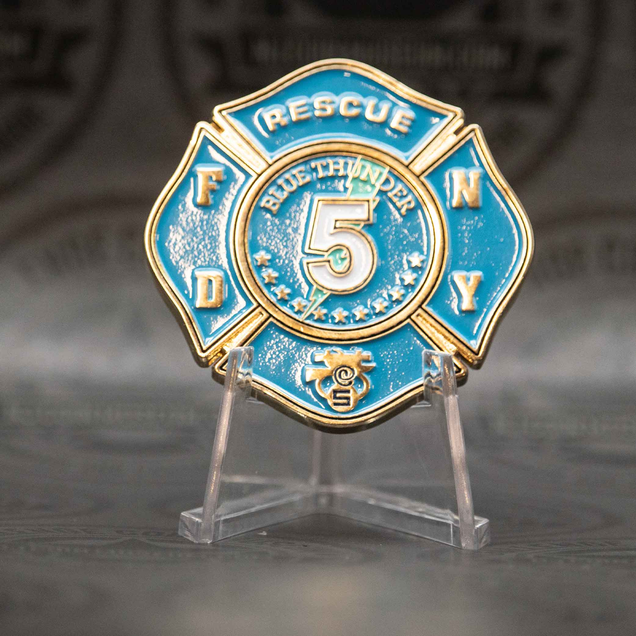The FDNY Blue Thunder Rescue 5 challenge coin honors one of New York City’s elite rescue companies, known for their bravery, precision, and unwavering commitment to saving lives under the most extreme conditions. Based in Staten Island, Rescue 5 is part of the FDNY’s Special Operations Command and is often called upon for high-risk rescues,
