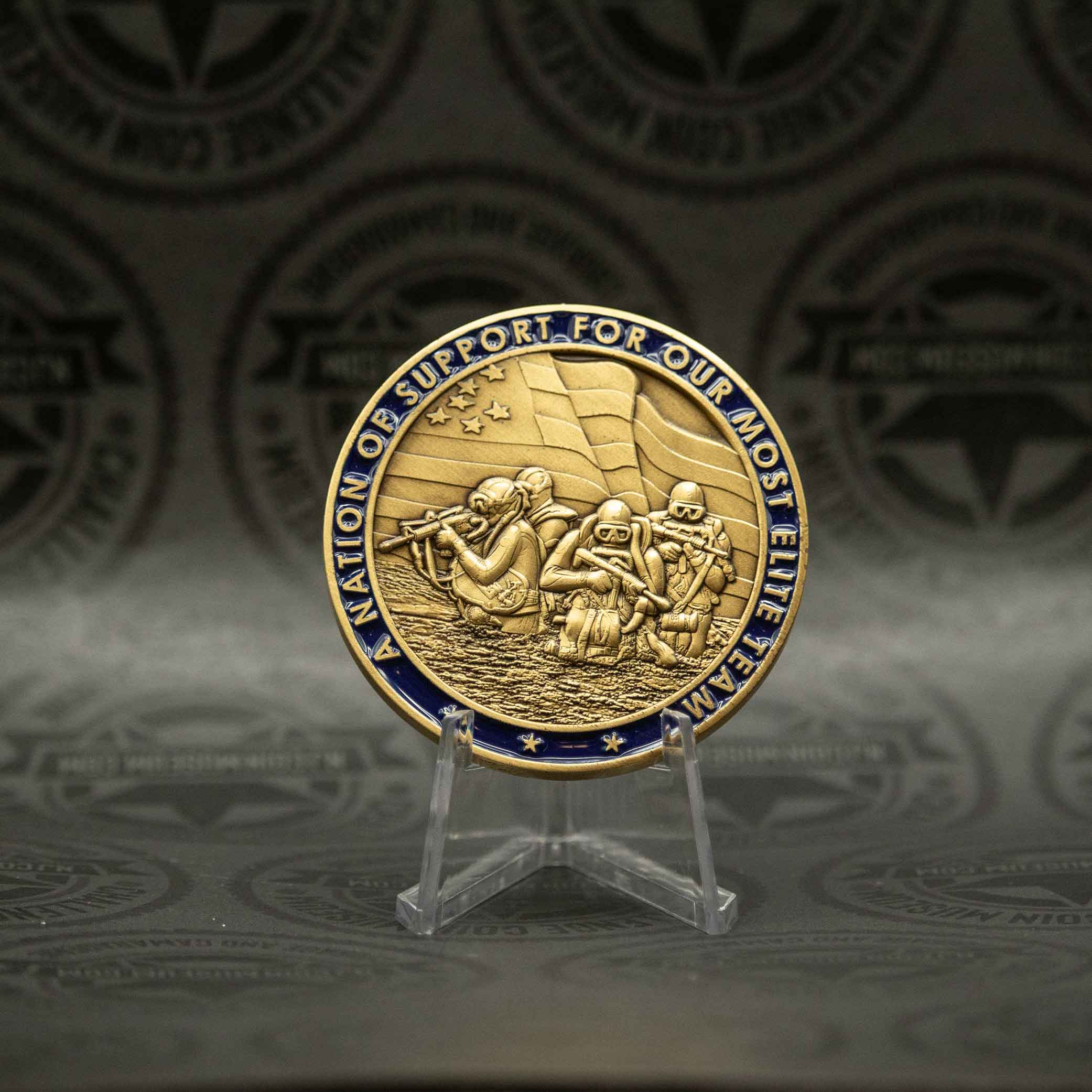 The Navy SEAL Foundation – Special Warfare Community challenge coin is a distinguished symbol of honor, resilience, and unwavering support for the warriors and families of Naval Special Warfare. Representing the Foundation’s vital mission to provide comprehensive assistance to SEALs, SWCCs, veterans, and their loved ones, the coin embodies the values of sacrifice, strength, and