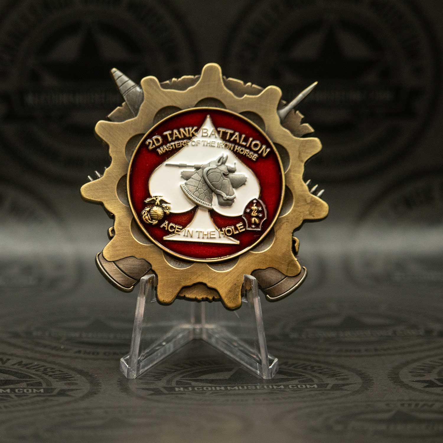 The United States Marine Corps 2D Tank Battalion challenge coin stands as a proud tribute to the Marines who served in one of the Corps’ most storied armored units. Activated in 1941 and deactivated in 2021 as part of the Marine Corps’ Force Design modernization, the 2D Tank Battalion played a crucial role in numerous