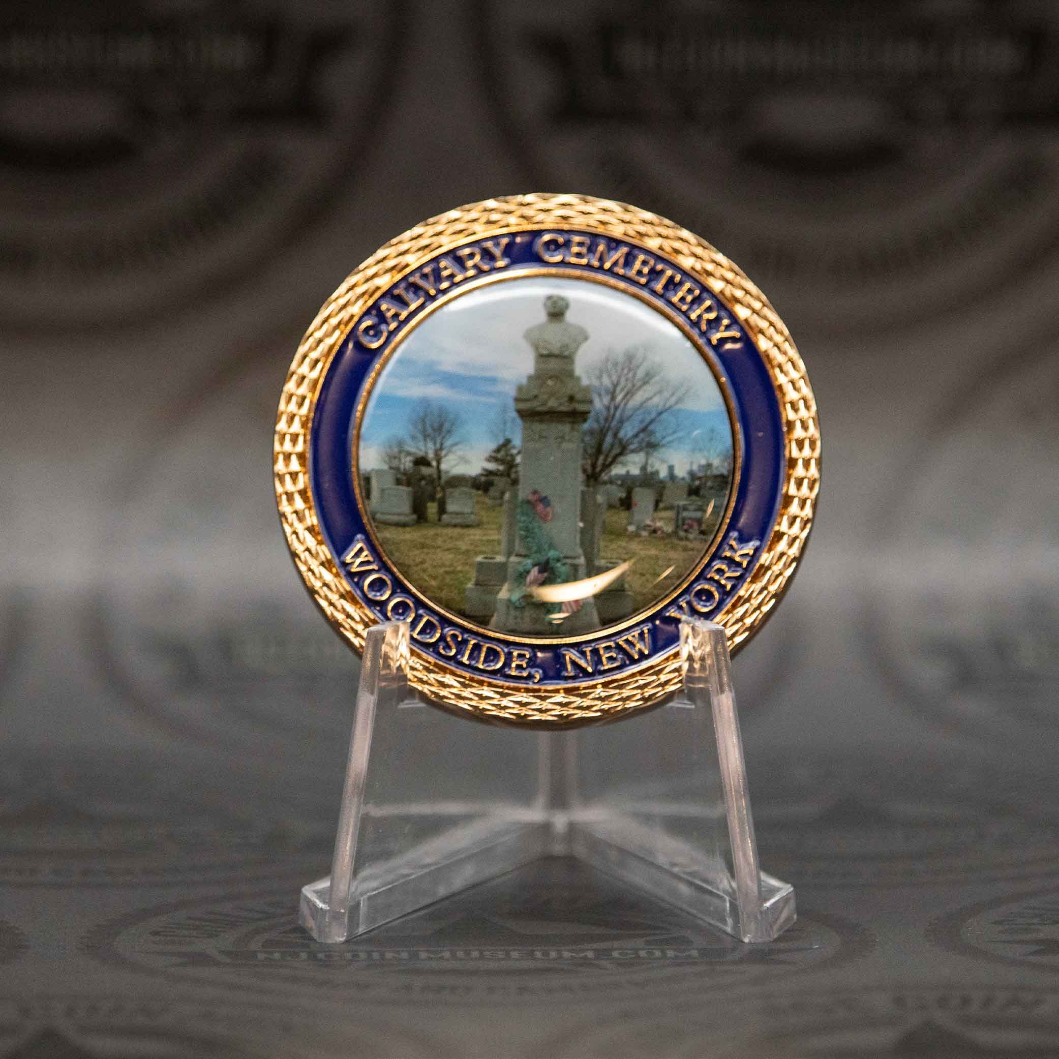 The Calvary Cemetery Woodside, NY challenge coin pays tribute to one of the most historic and sacred resting places in the United States. Established in 1848, Calvary Cemetery is the final resting place for over three million individuals, including countless veterans, public servants, and notable historical figures. We invite you to stop in anytime and