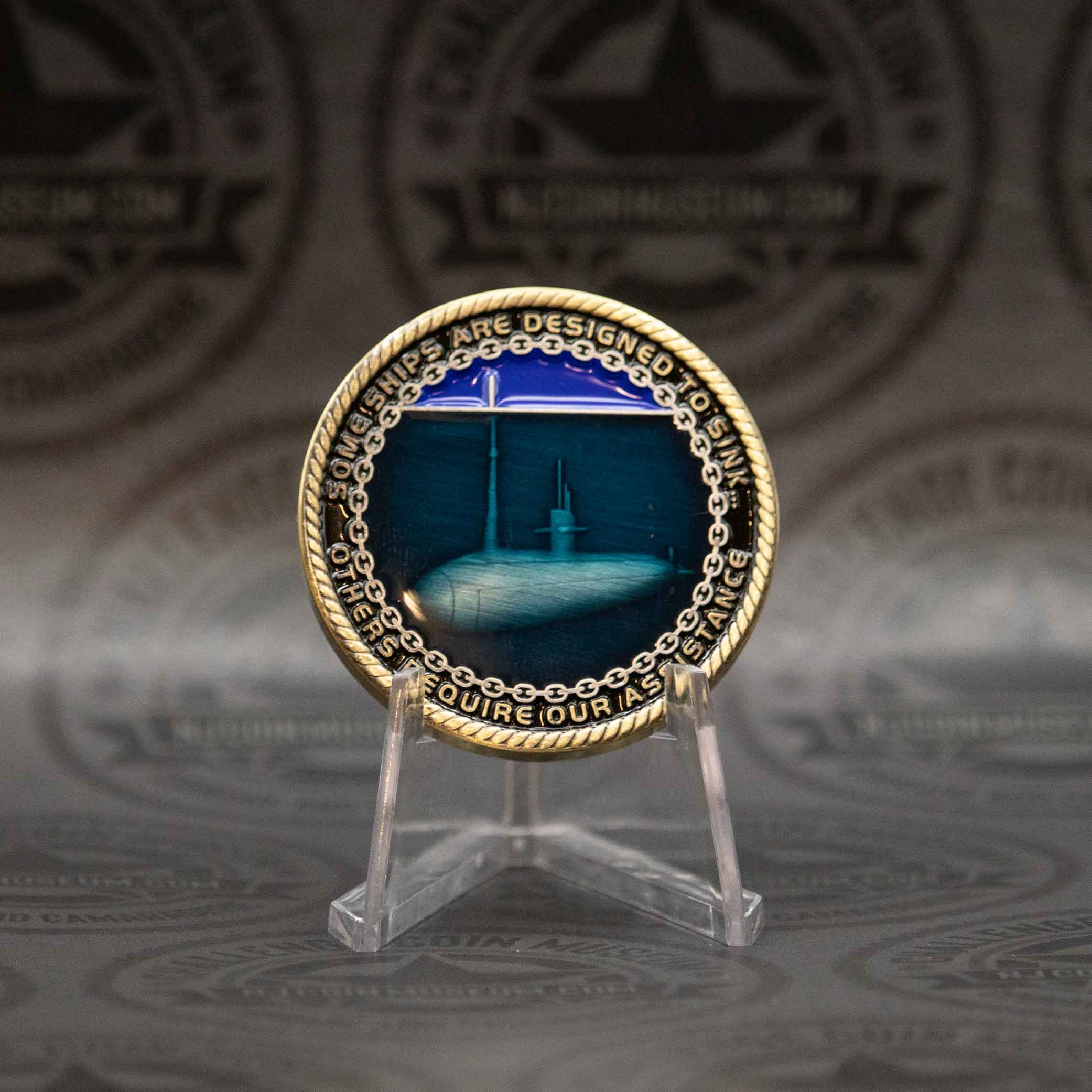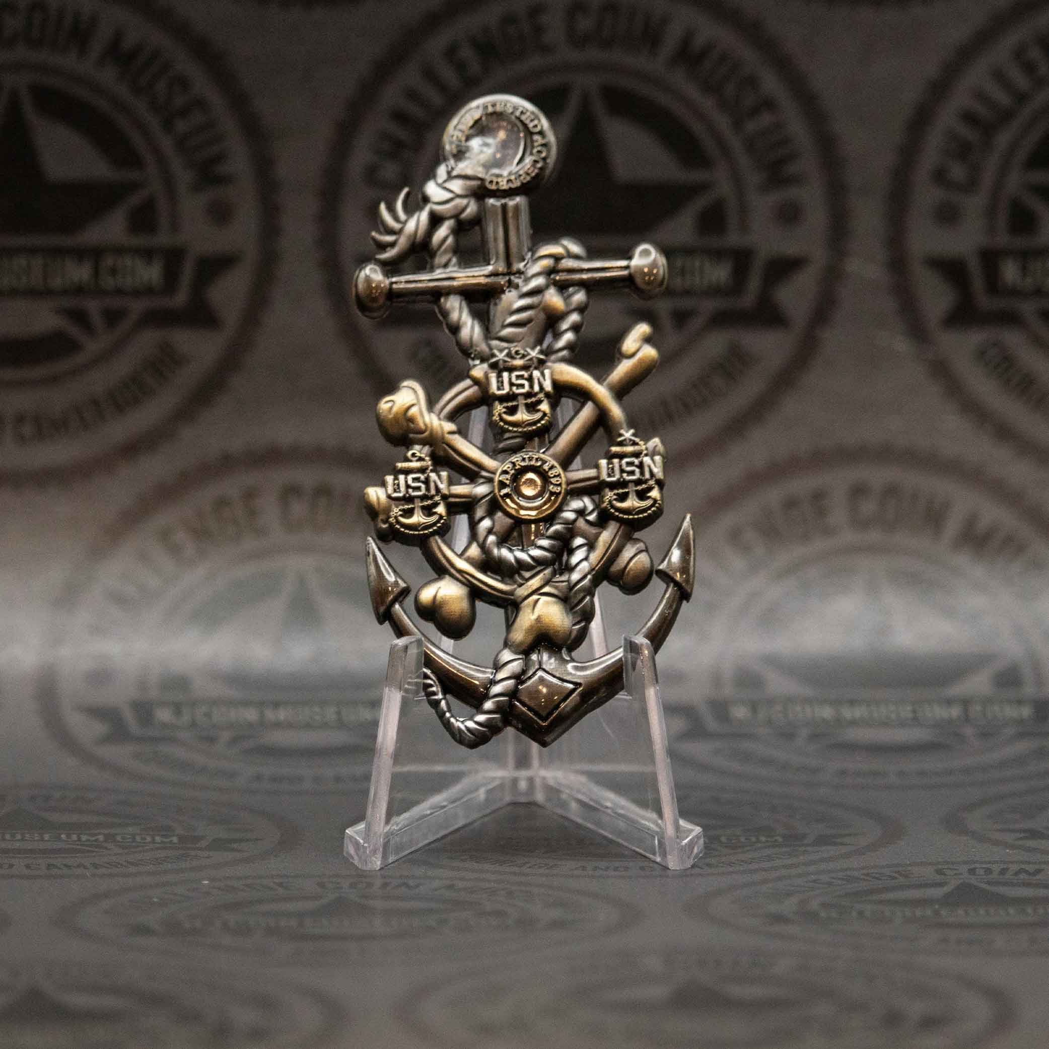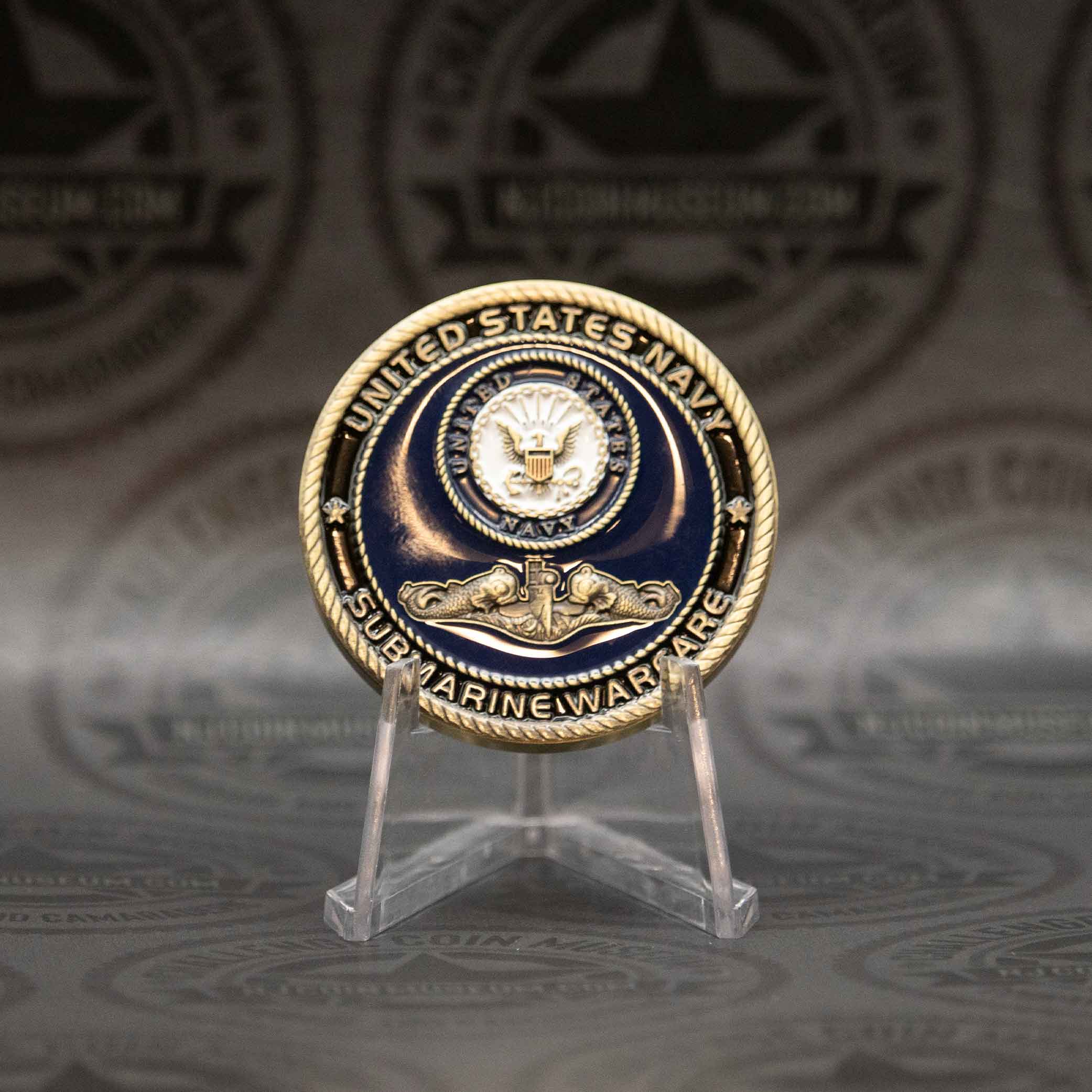 The U.S. Navy Submarine Warfare (also known as “Silent Service”) challenge coin honors the elite naval community responsible for undersea operations. We invite you to stop in anytime and see this Beautiful Museum! Click HERE for hours and directions. Have a challenge coin we may not have? Bring it in and trade it for our