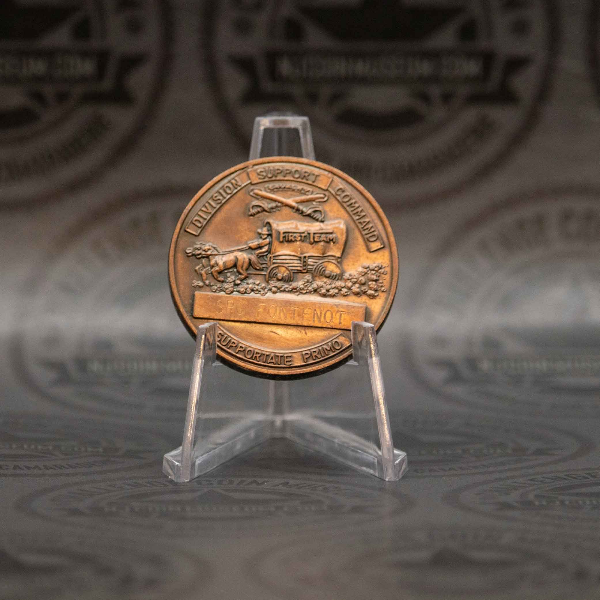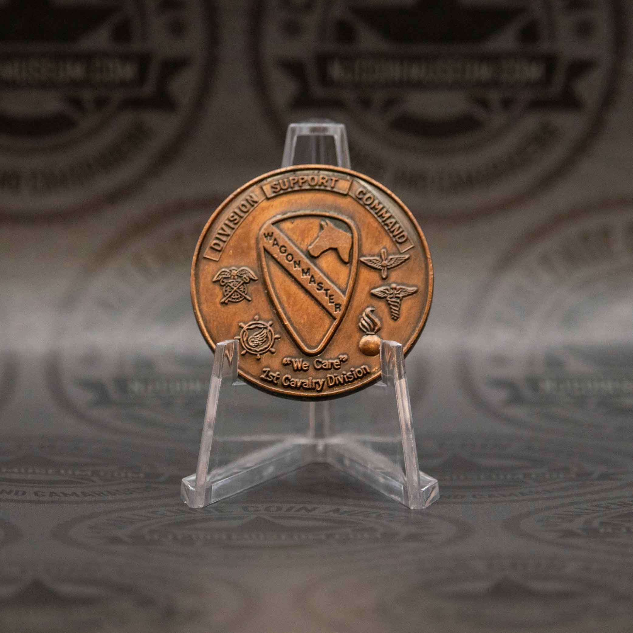 The Wagonmaster (1st Cavalry Division) challenge coin, also known as the “Task Force Wagonmaster” coin, is a powerful emblem of the 1st Cavalry Division Sustainment Brigade’s heritage and mission. We invite you to stop in anytime and see this Beautiful Museum! Click HERE for hours and directions. Have a challenge coin we may not have?