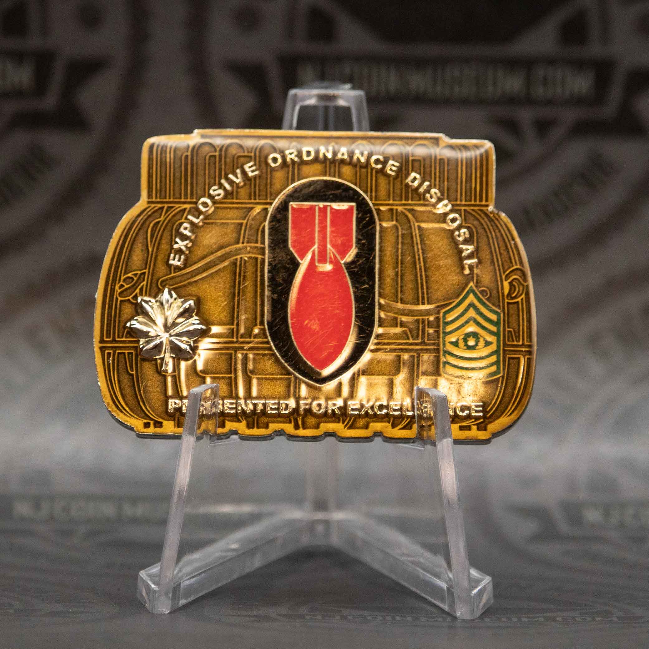 The 242nd Ordnance Battalion Explosive Ordnance Disposal (EOD) challenge coin is crafted to honor the operational excellence and technical prowess of Soldiers within the 242nd EOD Battalion. The Battalion’s motto, “Fast Tough Efficient,” underscores the front-line speed and precision the team brings to every mission, supported by the broader 20th CBRNE Command’s reputation for countering chemical, biological,