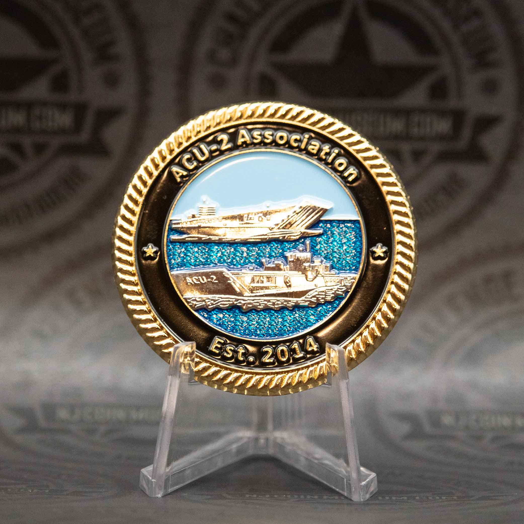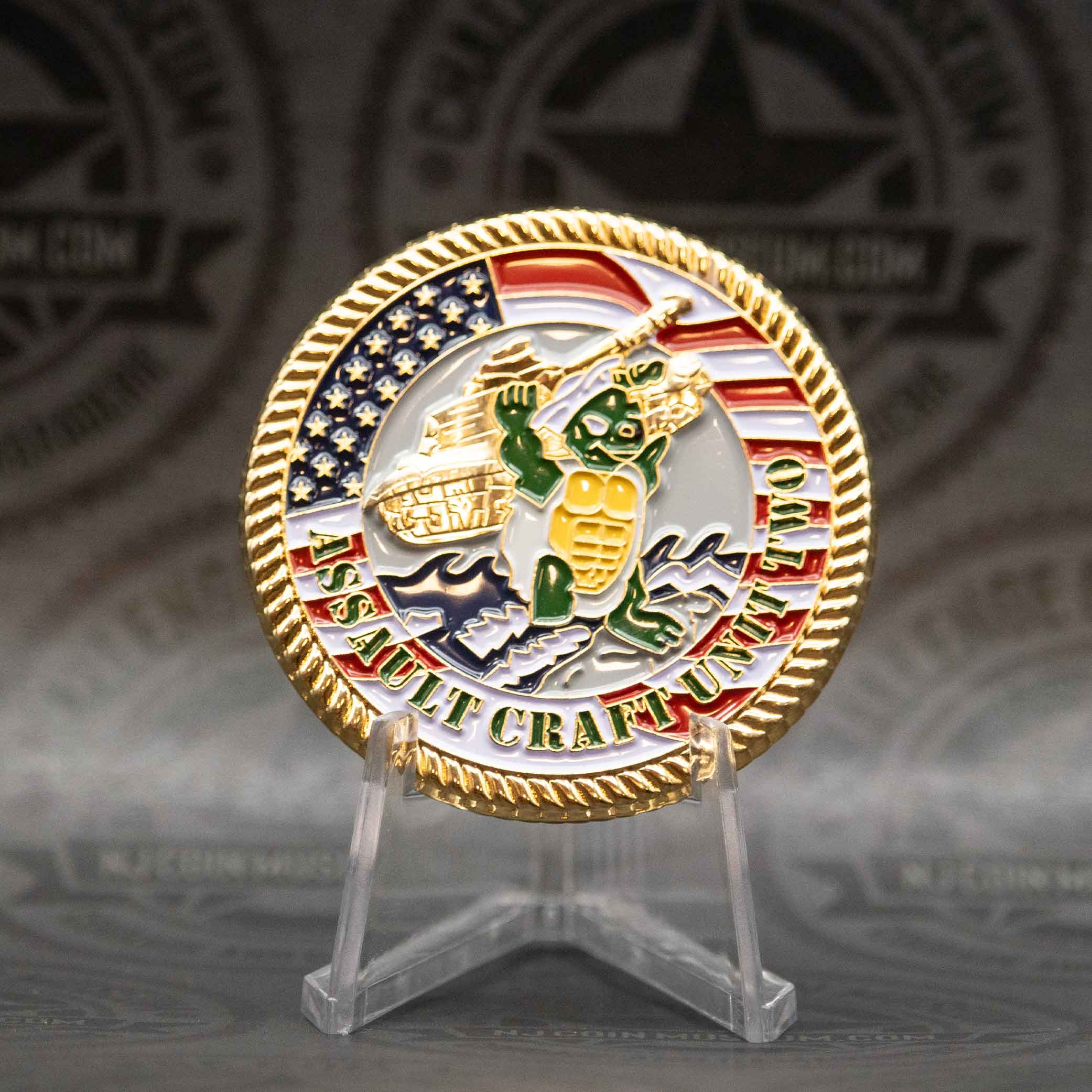 The Assault Craft Unit 2 Association challenge coin is a commemorative emblem created by members of ACU‑2 (based out of Naval Amphibious Base Little Creek). We invite you to stop in anytime and see this Beautiful Museum! Click HERE for hours and directions. Have a challenge coin we may not have? Bring it in and