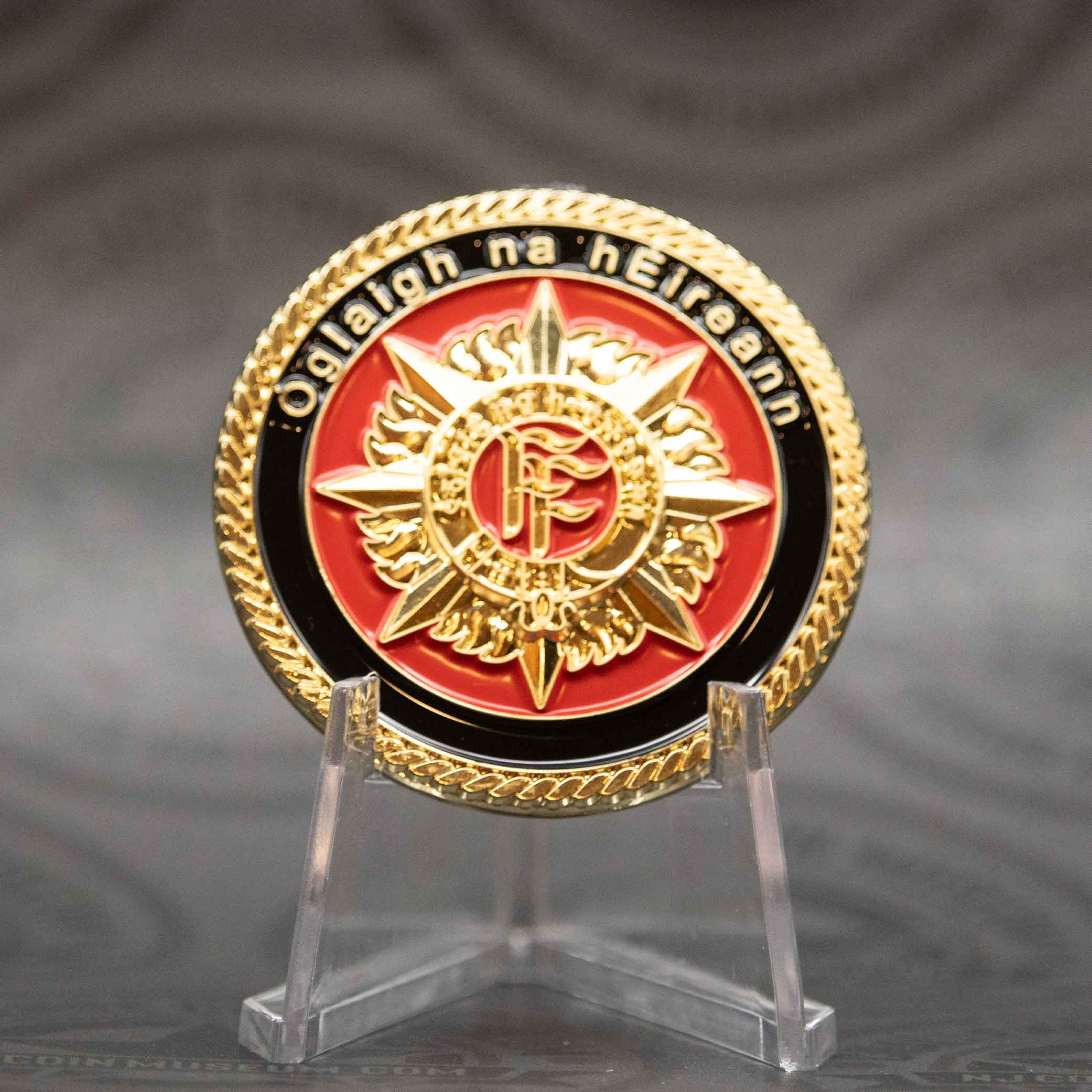 The Óglaigh na hÉireann challenge coin is a prestigious emblem that honors the service and tradition of Ireland’s Defence Forces. Bearing the Irish-language name for the military—meaning “Soldiers of Ireland”—these coins are often presented to Defence Forces personnel, foreign allies, or dignitaries to commemorate joint operations, peacekeeping missions, or distinguished service. We invite you to