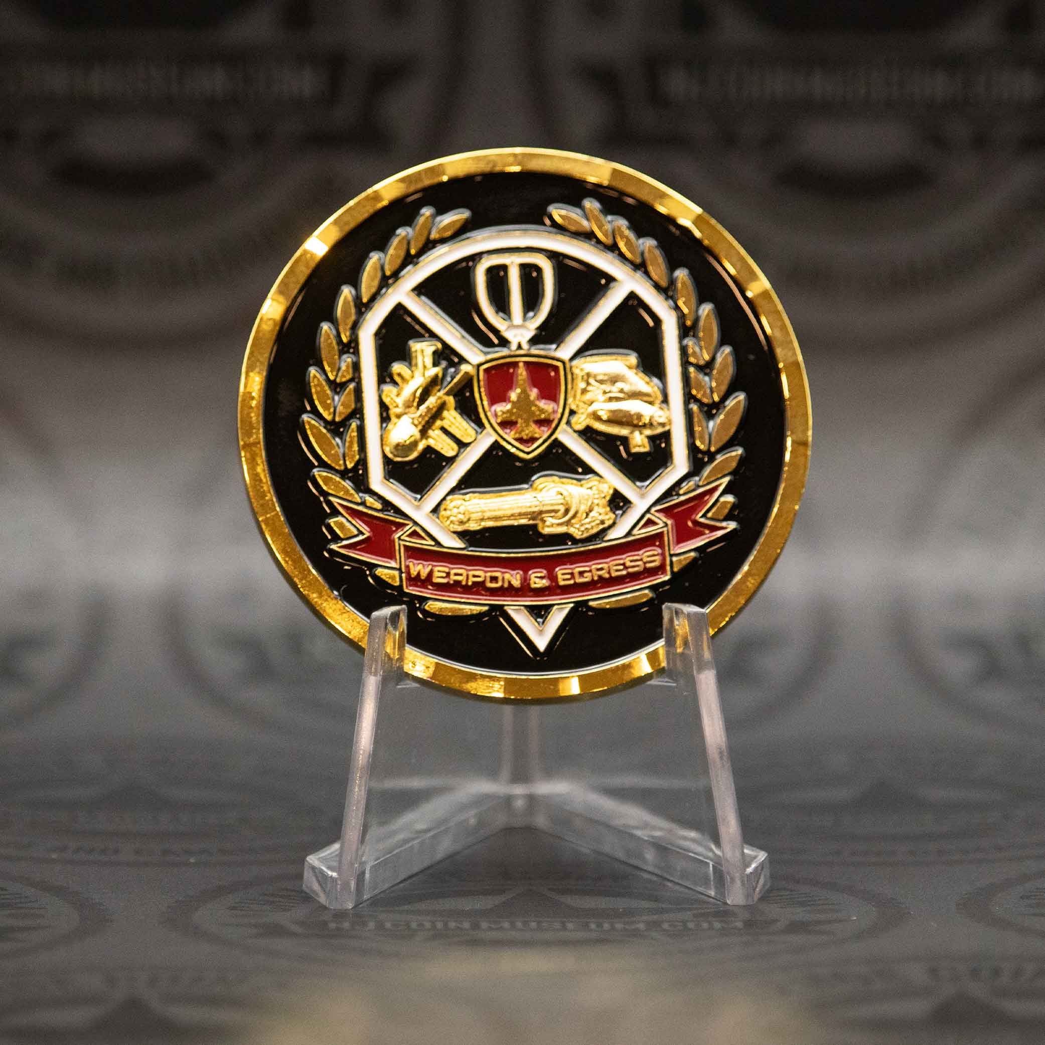 The Chilean F-16 Vipers Block 50 Weapons Egress challenge coin honors the elite airmen and technicians who specialize in the critical field of weapons egress systems on Chile’s most advanced fighter jets. These highly trained professionals ensure the safety and functionality of the ejection systems and armament components on the F-16 Viper, a cornerstone of