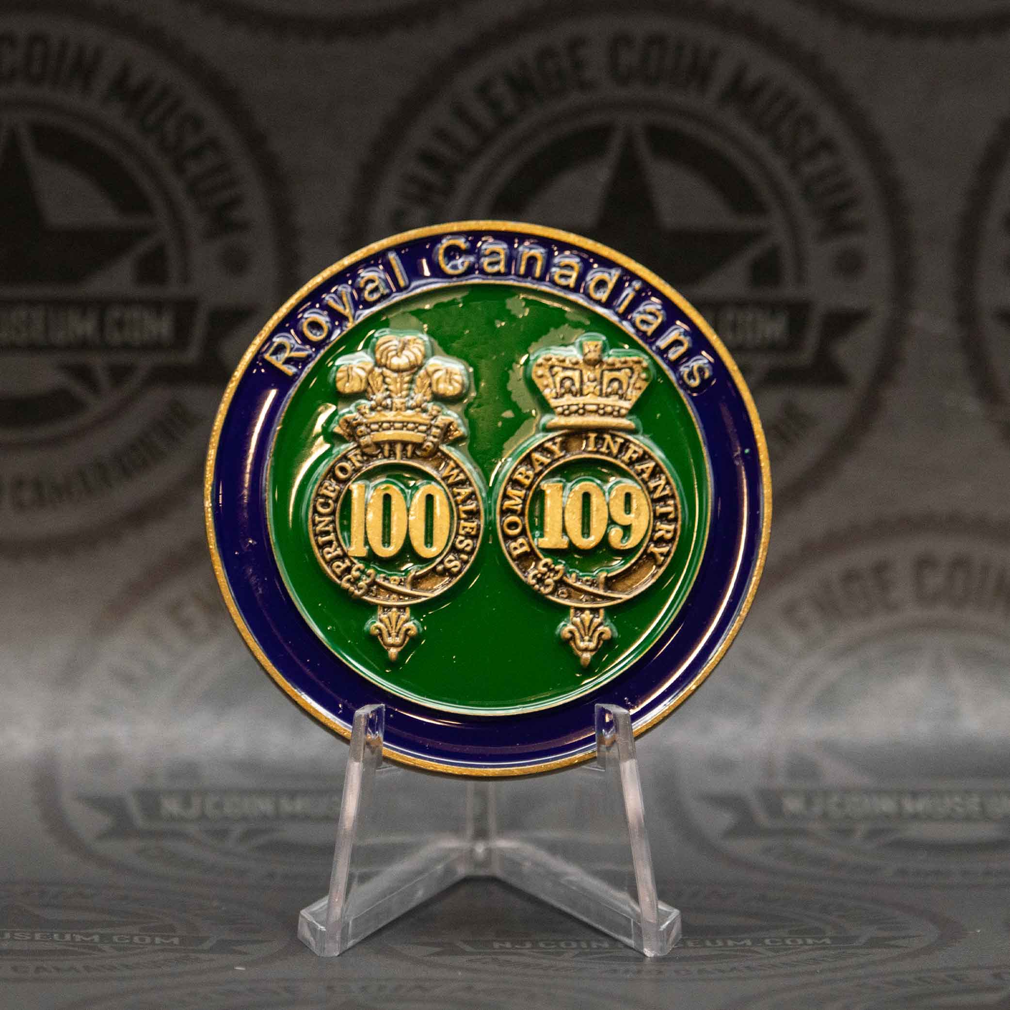 The Royal Canadians Bombay Infantry challenge coin pays tribute to the storied legacy and valor of this distinguished military unit with historic ties to both Canadian and British colonial forces. We invite you to stop in anytime and see this Beautiful Museum! Click HERE for hours and directions. Have a challenge coin we may not