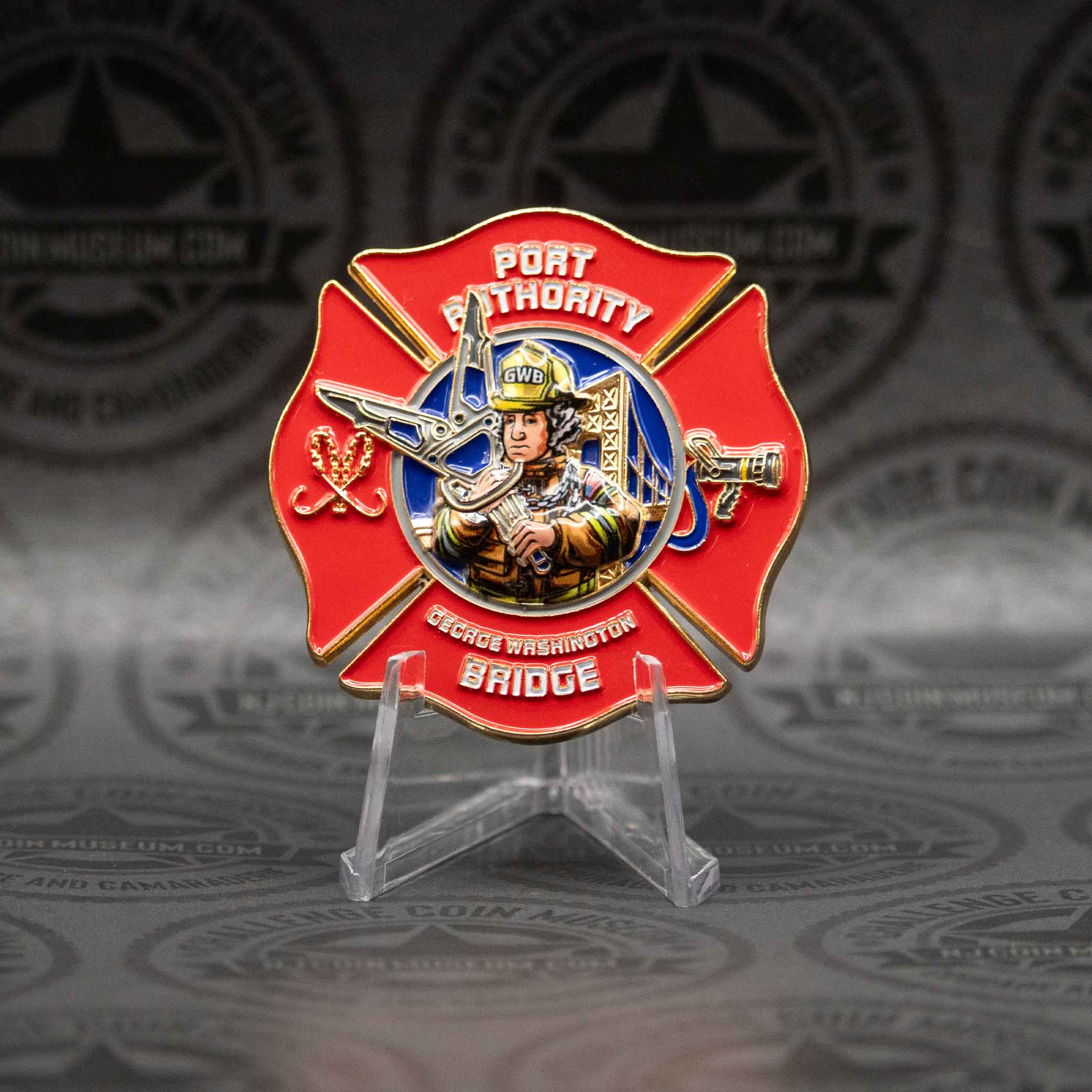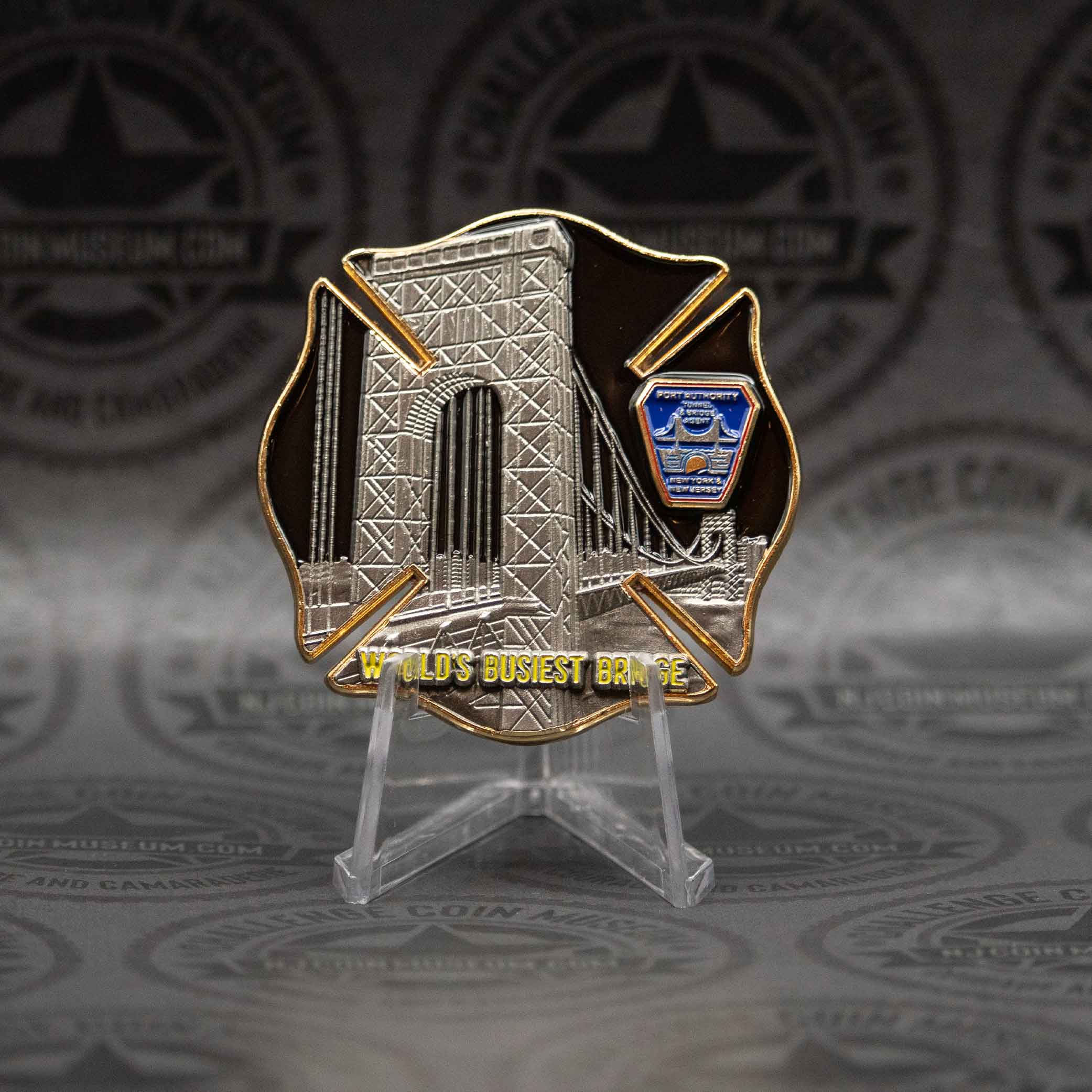 The Port Authority George Washington Bridge (GWB) challenge coin is a commemorative token steeped in the history and prestige of one of the world’s busiest and most iconic bridges. We invite you to stop in anytime and see this Beautiful Museum! Click HERE for hours and directions. Have a challenge coin we may not have?