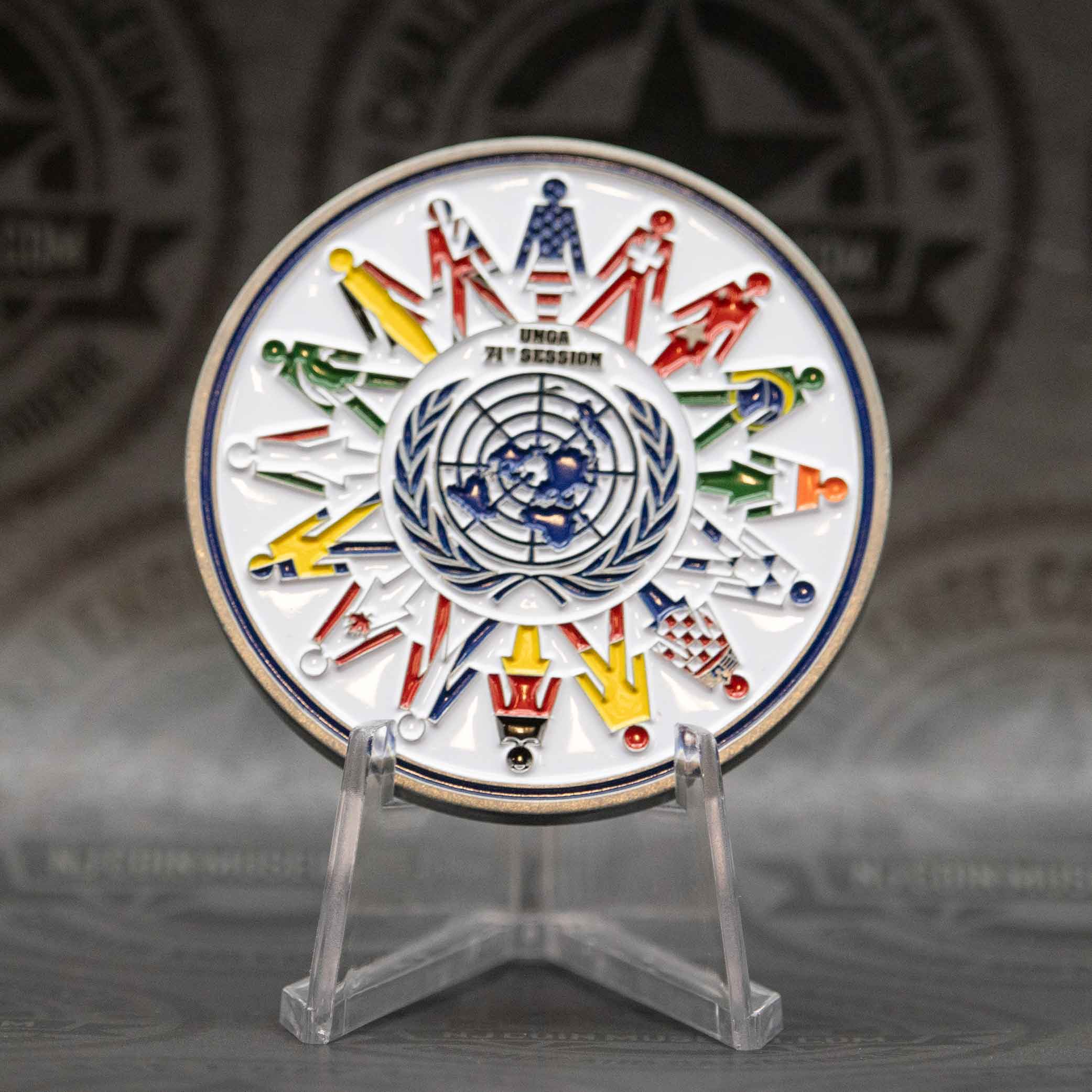 The UNGA 41st Session Challenge Coin is a distinguished commemorative piece honoring the 41st session of the United Nations General Assembly held in 1986. We invite you to stop in anytime and see this Beautiful Museum! Click HERE for hours and directions. Have a challenge coin we may not have? Bring it in and trade