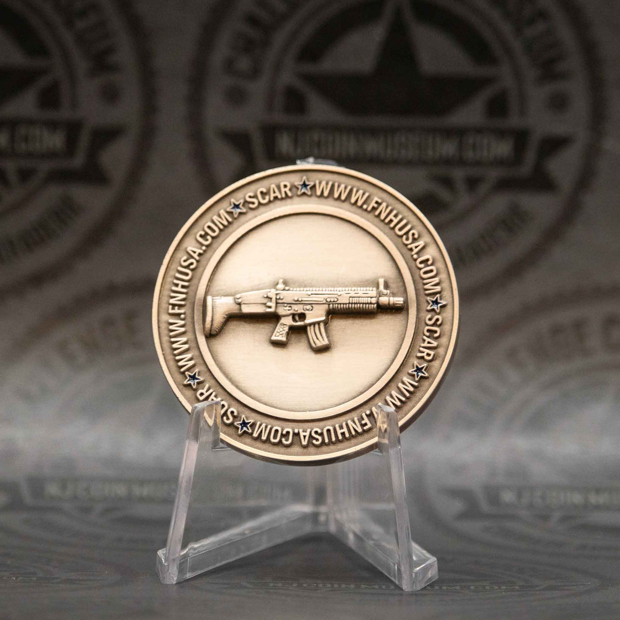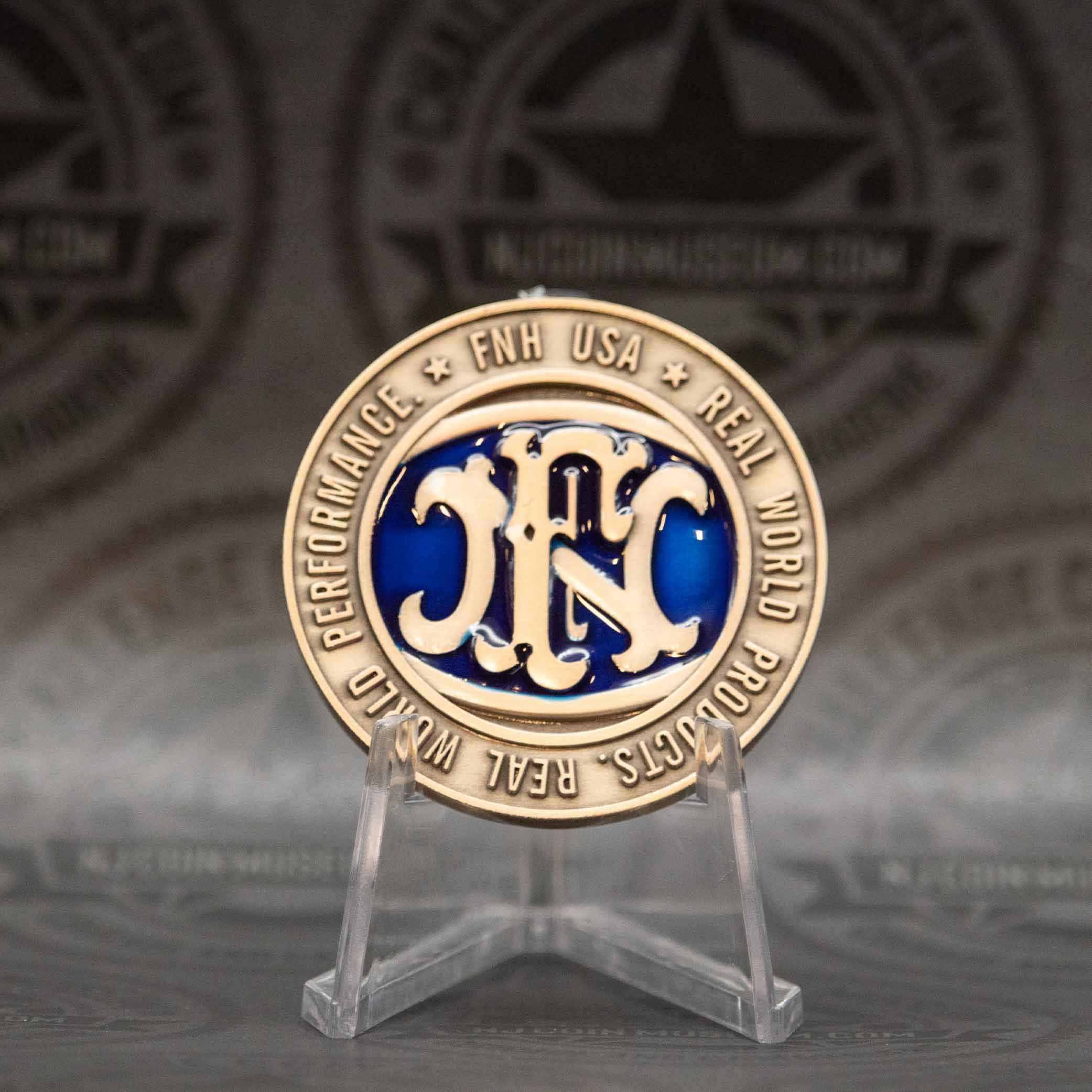 The “NF USA Real World Products Real World Performance” challenge coin is a commemorative item associated with FNH USA, the U.S. subsidiary of FN Herstal, a renowned Belgian firearms manufacturer. We invite you to stop in anytime and see this Beautiful Museum! Click HERE for hours and directions. Have a challenge coin we may not