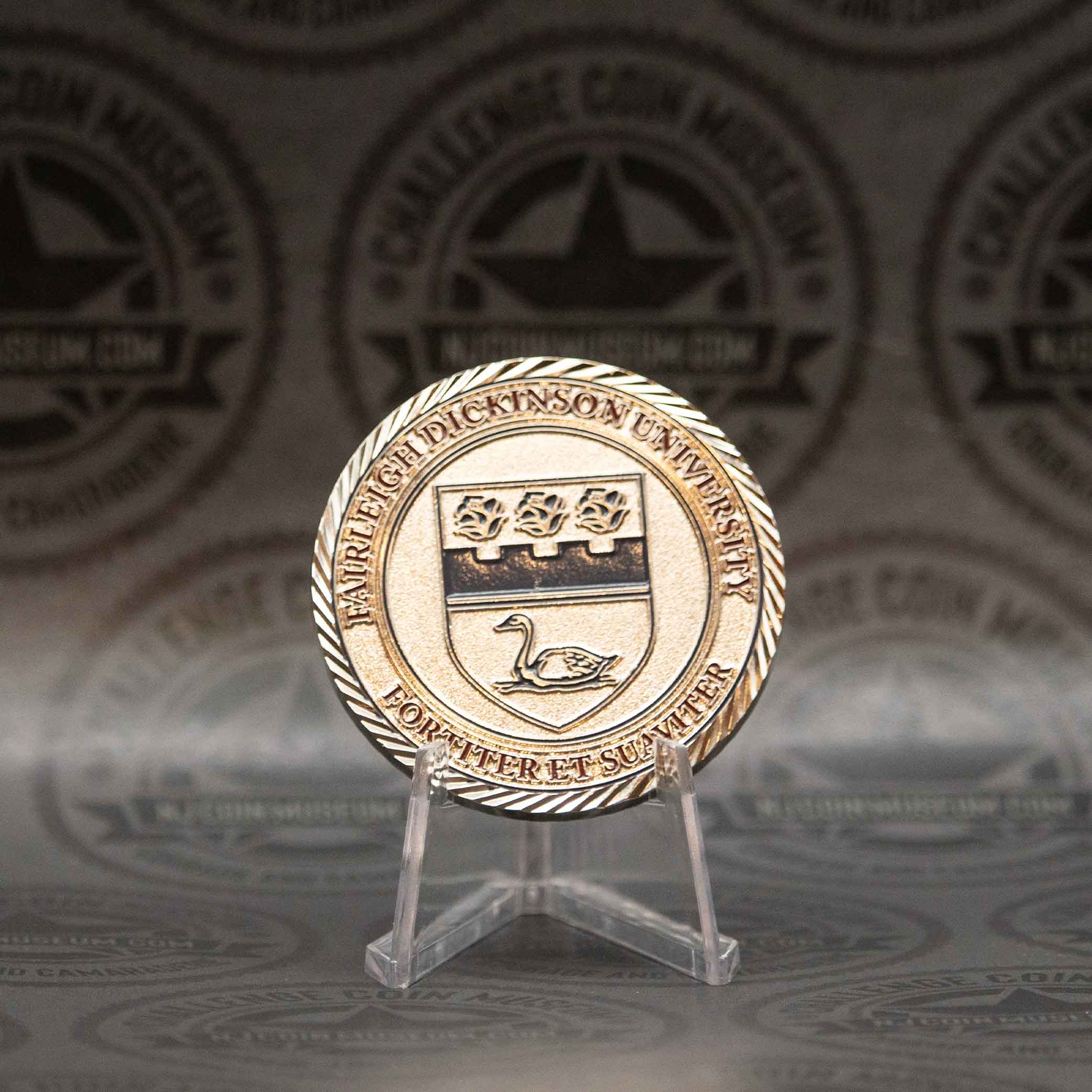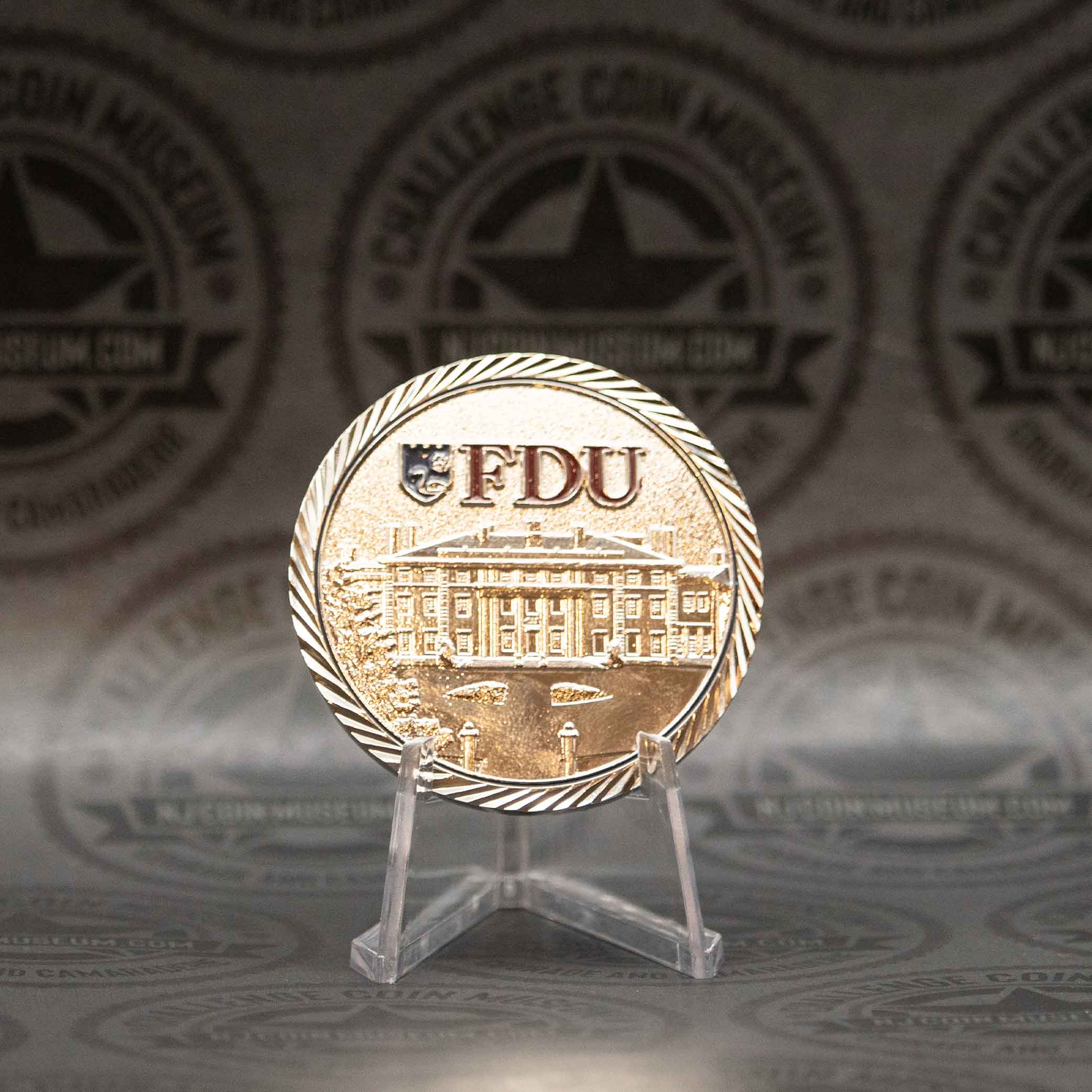 The Fairleigh Dickinson University (FDU) challenge coin is a distinctive emblem that represents the university’s rich history and commitment to excellence. We invite you to stop in anytime and see this Beautiful Museum! Click HERE for hours and directions. Have a challenge coin we may not have? Bring it in and trade it for our