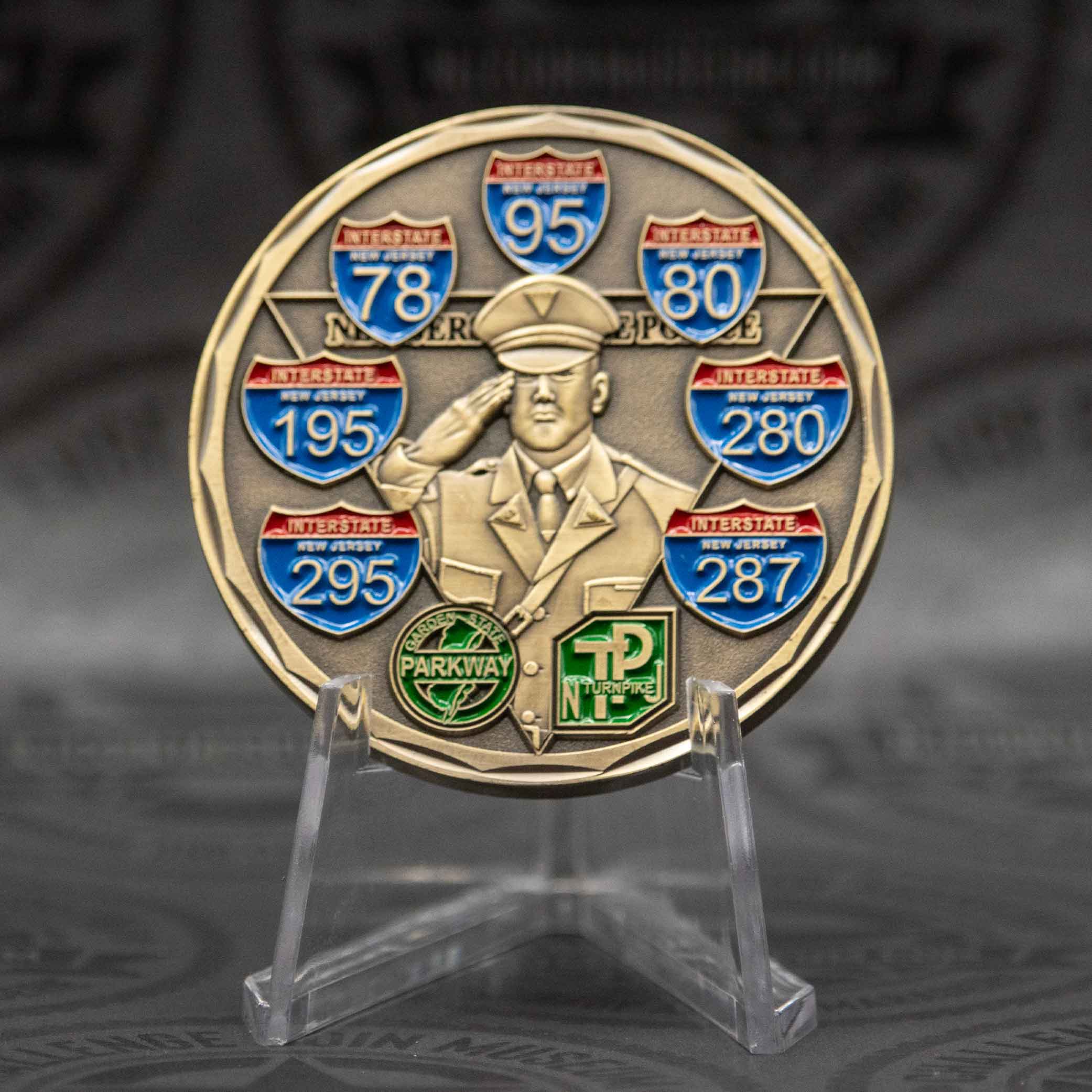 The NJSP “Highway Signs” Trooper challenge coin celebrates the distinct and vital role of New Jersey State Police troopers who patrol the state’s highways. We invite you to stop in anytime and see this Beautiful Museum! Click HERE for hours and directions. Have a challenge coin we may not have? Bring it in and trade