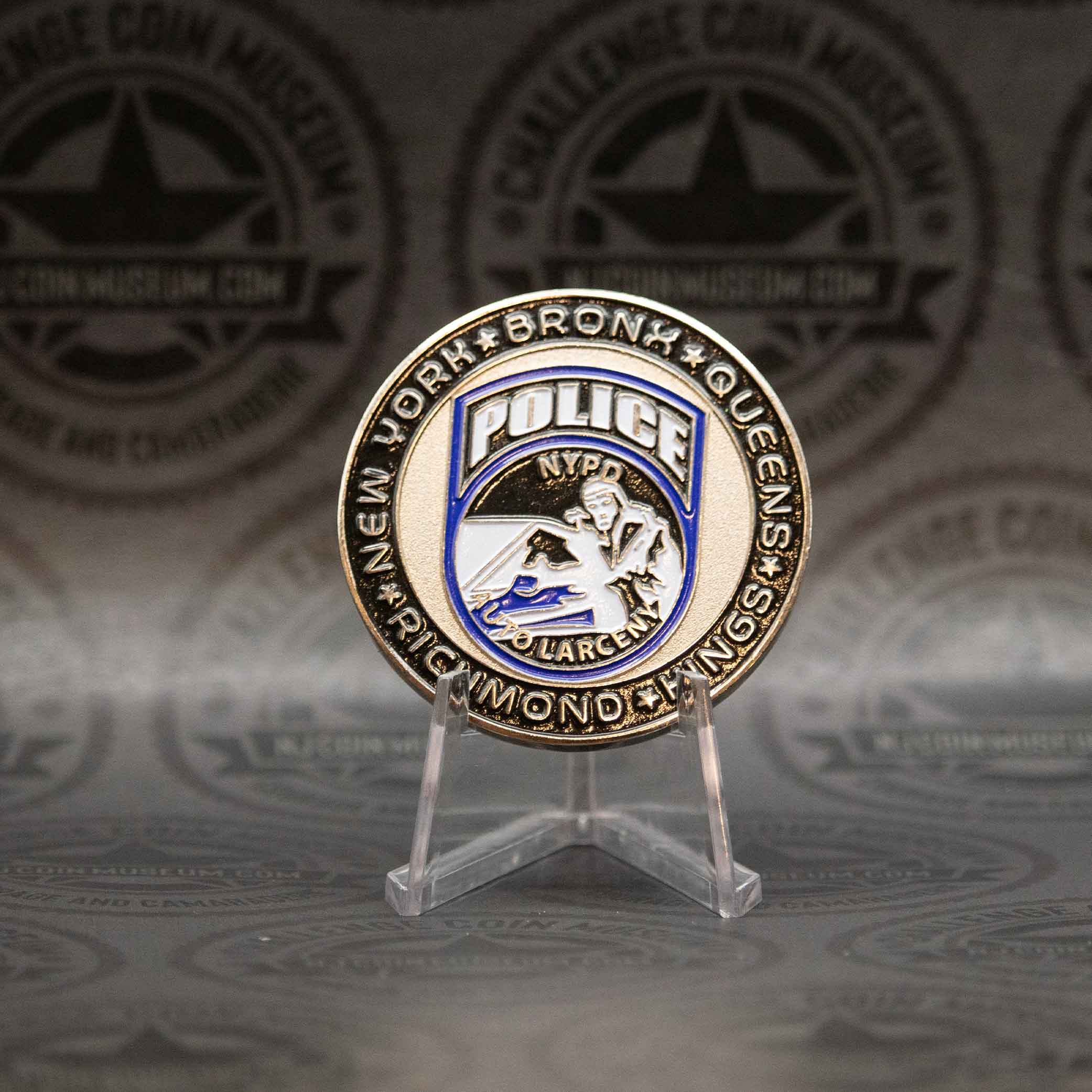 The NYPD Auto‑Larceny Unit challenge coin serves as a distinctive emblem of recognition and unity within a specialized branch of the NYPD Detective Bureau. We invite you to stop in anytime and see this Beautiful Museum! Click HERE for hours and directions. Have a challenge coin we may not have? Bring it in and trade