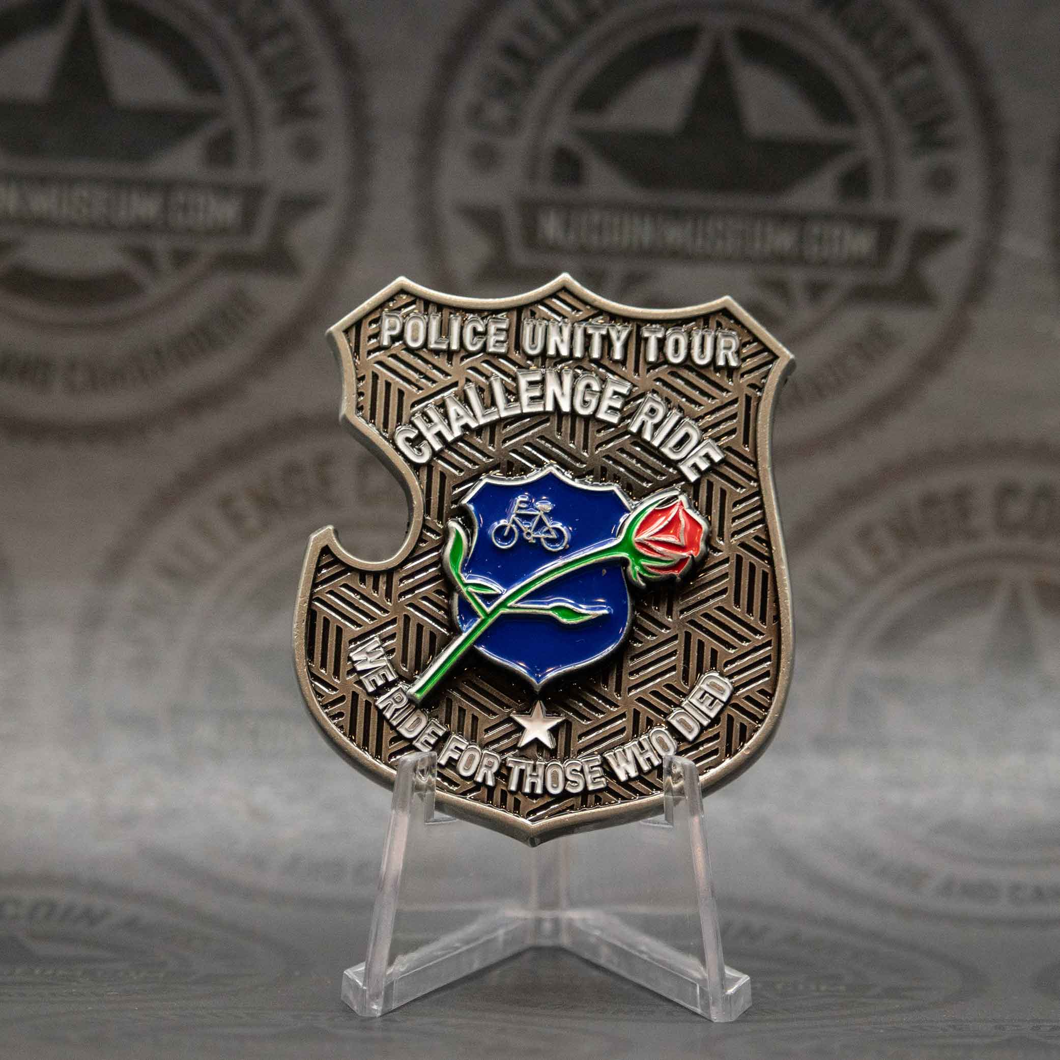The North Plainfield Police Unity Tour Challenge Ride commemorative challenge coin is a distinctive emblem honoring the dedication of law enforcement officers participating in the Police Unity Tour. This annual event raises awareness of officers who have died in the line of duty and supports the National Law Enforcement Officers Memorial Fund. We invite you