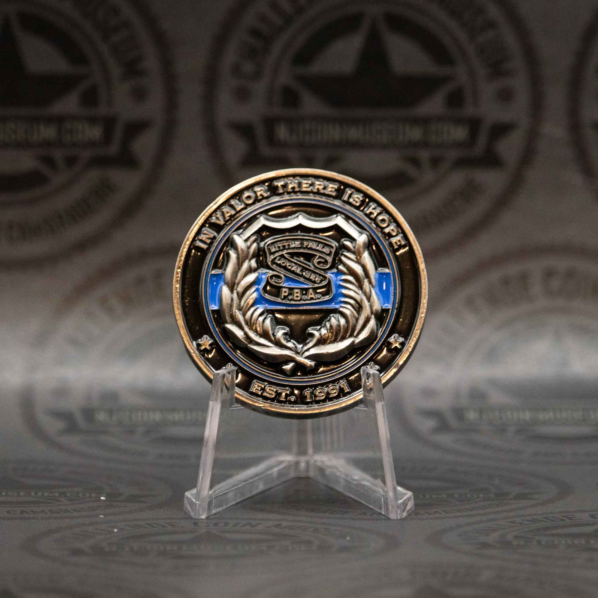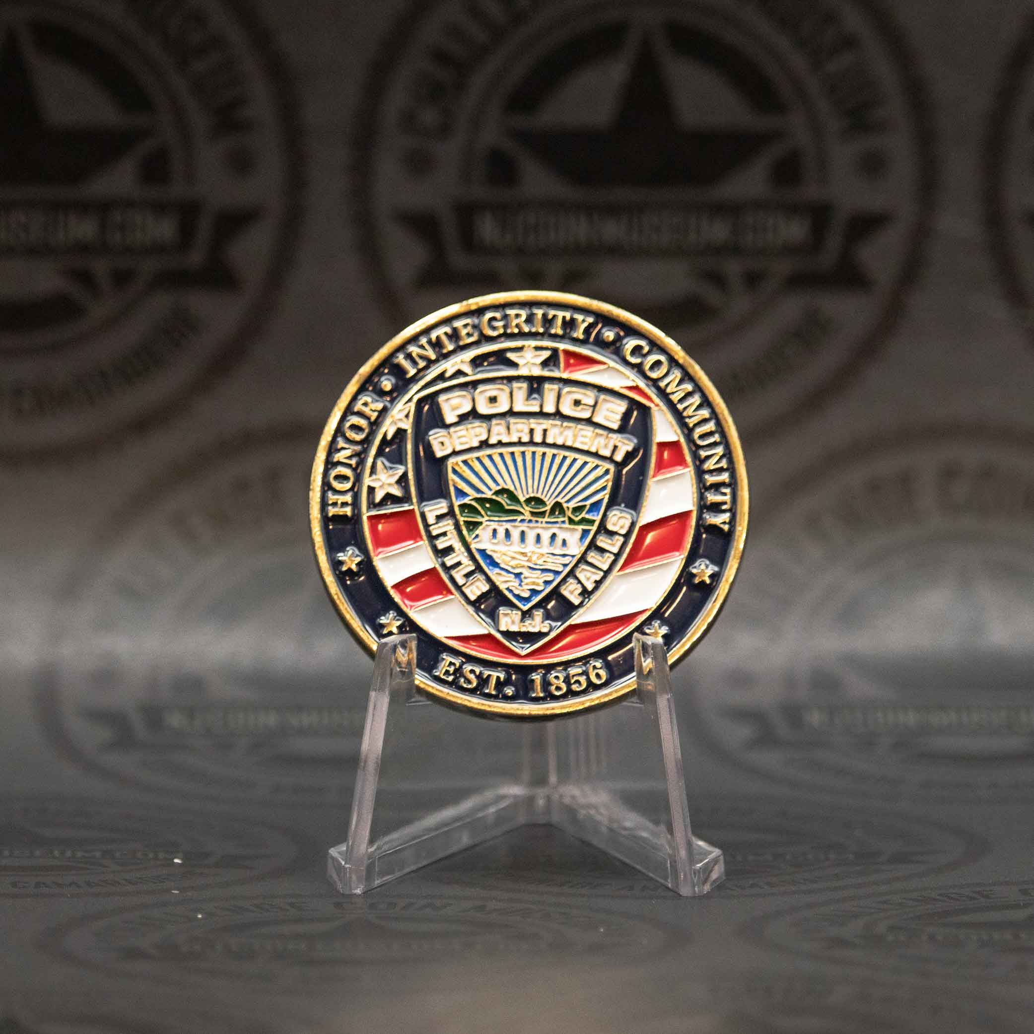 The Little Falls Police Department challenge coin symbolizes the values and pride of the township’s law enforcement officers. While there’s no publicly shared image of a specific coin design, it likely features elements central to the department’s ethos—such as the Little Falls badge, township seal, and motto emphasizing “Honor, Integrity & Community”. We invite you