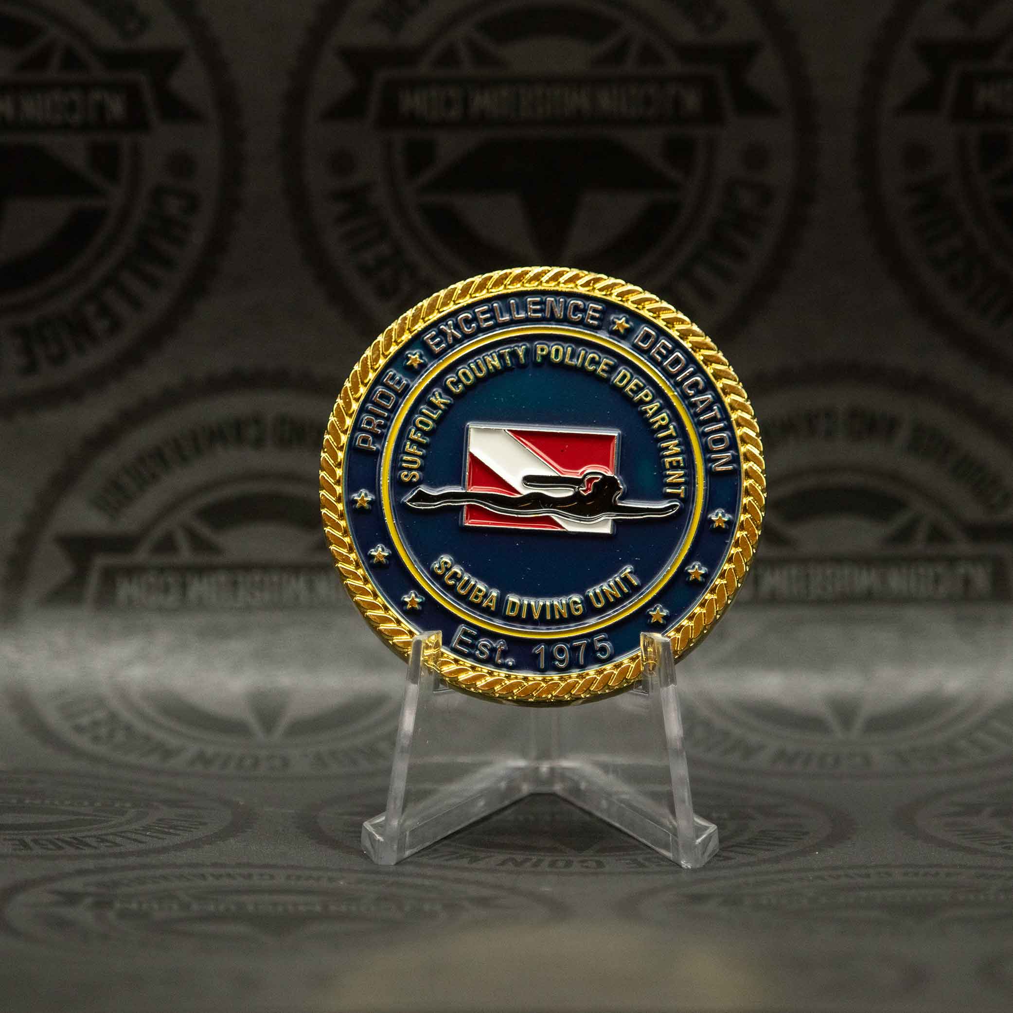 The Suffolk County Police Department Scuba Diving Unit challenge coin honors the bravery, skill, and specialized training of the officers who serve beneath the surface in some of the most challenging and hazardous environments. This elite unit is tasked with underwater search and recovery missions, evidence retrieval, and rescue operations in lakes, rivers, and coastal