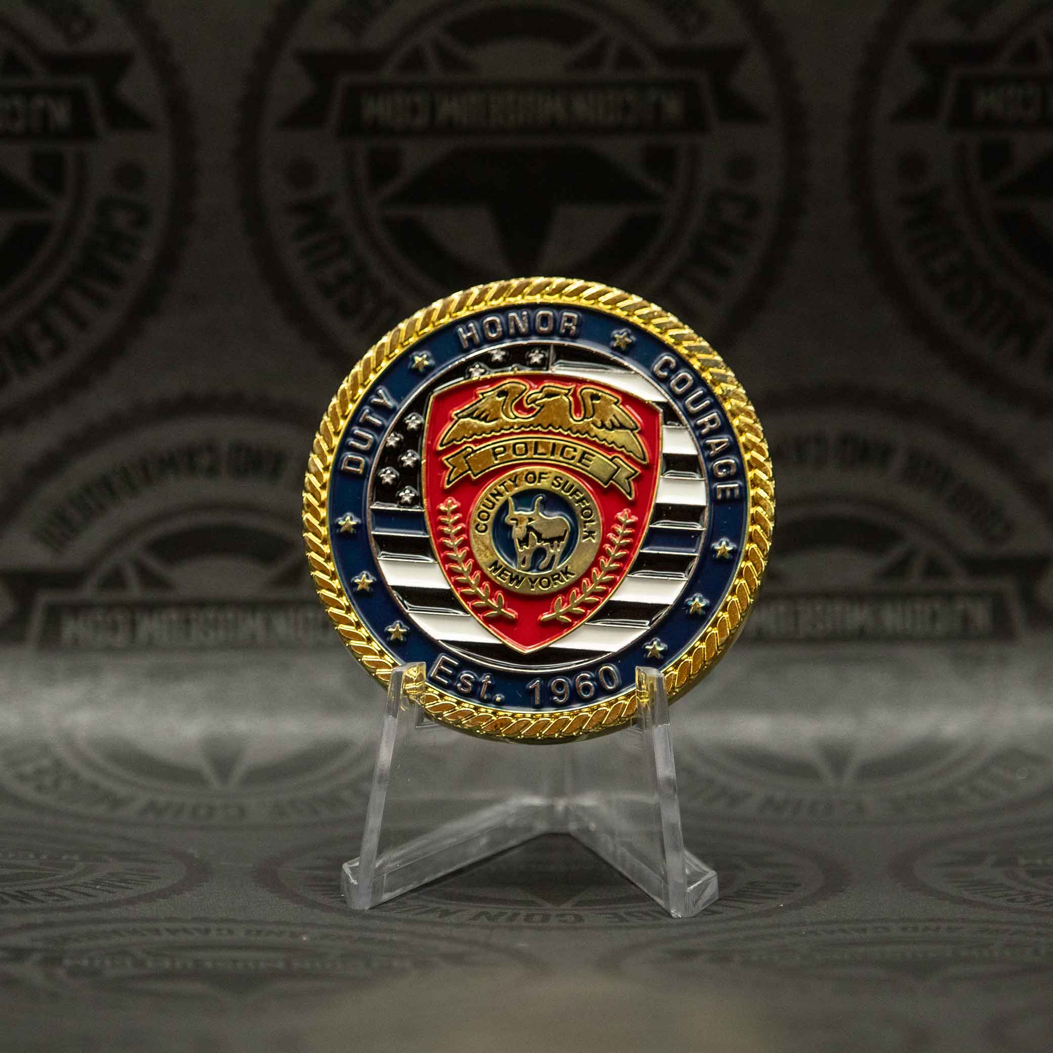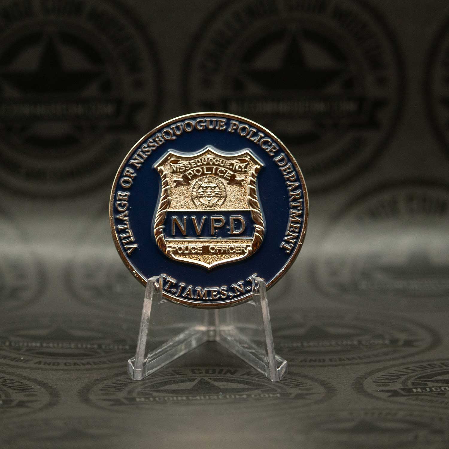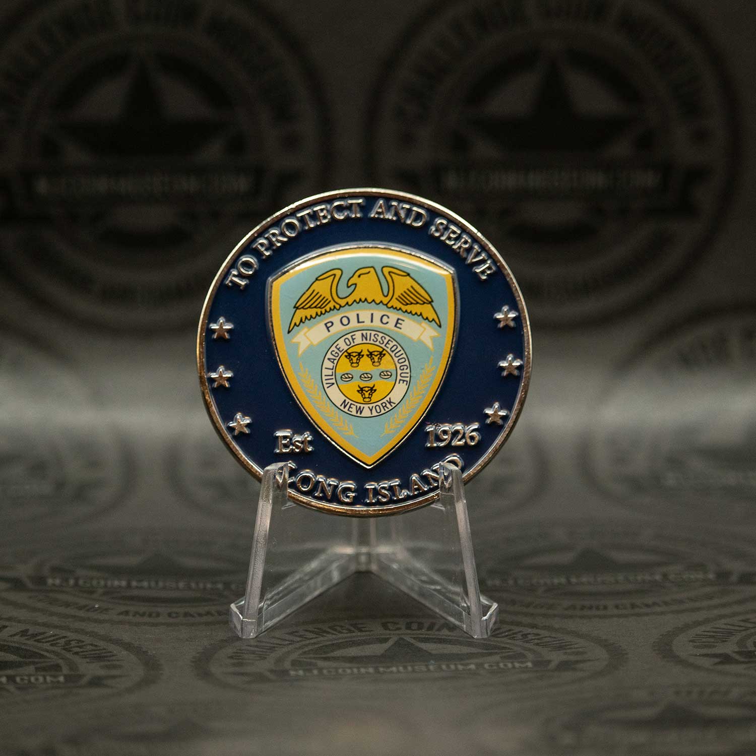 The Village of Nissequogue Police Department challenge coin serves as a distinguished emblem honoring the dedication and service of officers in this close-knit Long Island community. Established in 1926, the department has evolved into a full-service, professional, community-oriented agency, providing residents with 24/7 protection and emphasizing the enforcement of vehicle and traffic laws, particularly speeding