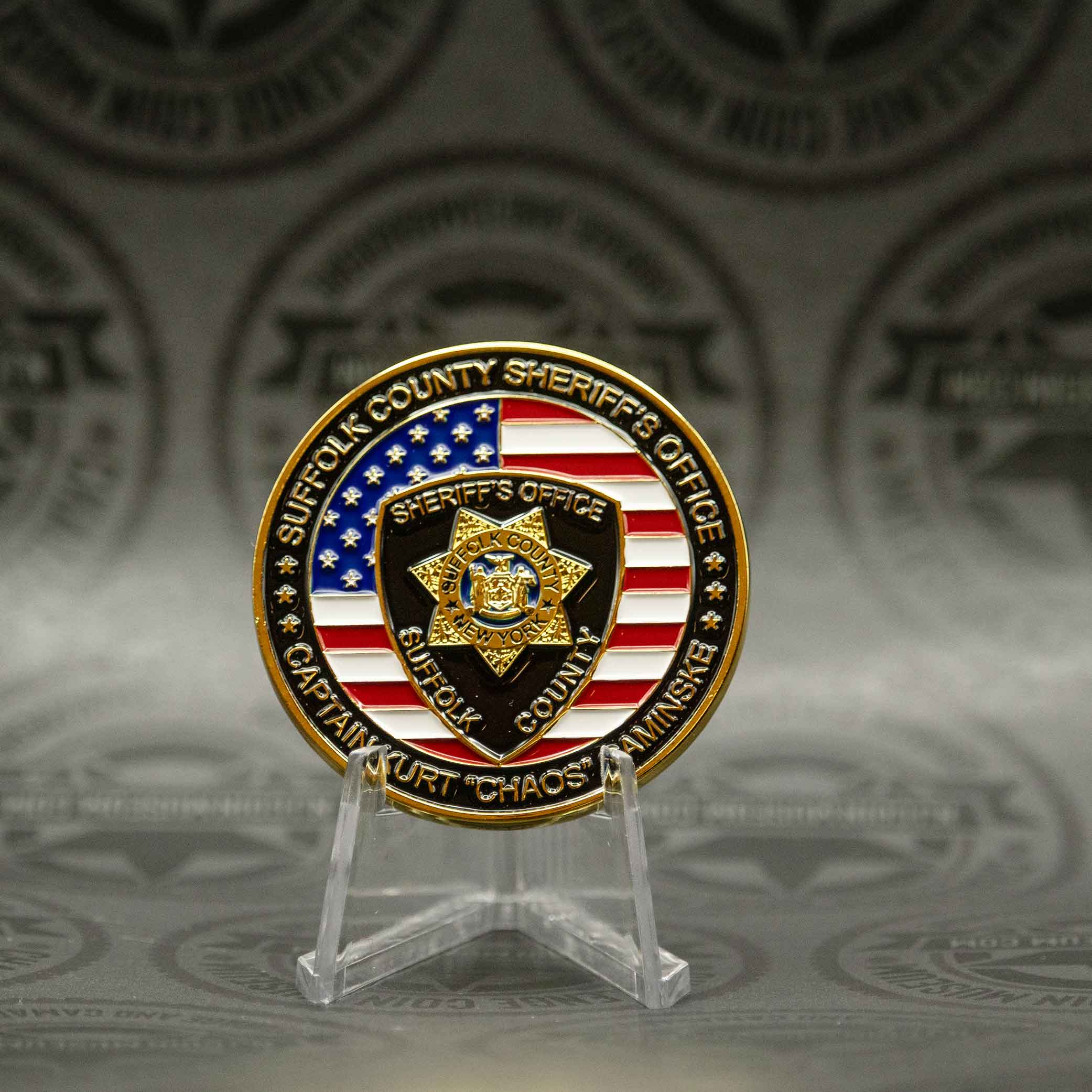 The Suffolk County Sheriff’s Office St. Michael Patron Saint challenge coin is a powerful symbol of faith, protection, and unwavering duty. St. Michael the Archangel, revered as the patron saint of law enforcement, represents strength, courage, and the eternal fight against evil. Holding this coin is a deeply personal token for many, signifying not only
