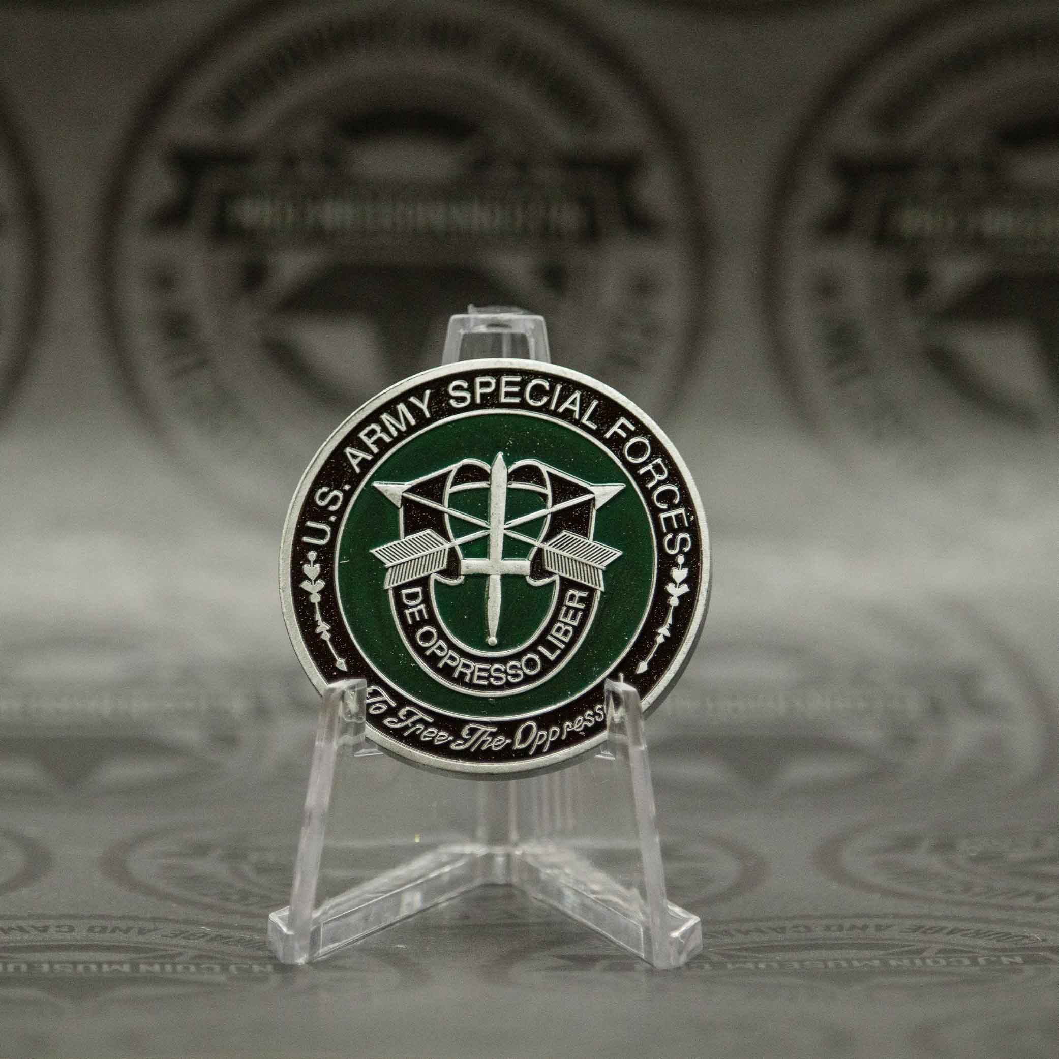The United States Army Special Forces challenge coin is a revered emblem representing the elite warriors known as the Green Berets. These coins embody the core values of the Special Forces—courage, integrity, and excellence—and are often presented to recognize exceptional service, mark unit affiliation, or commemorate participation in critical missions. We invite you to stop