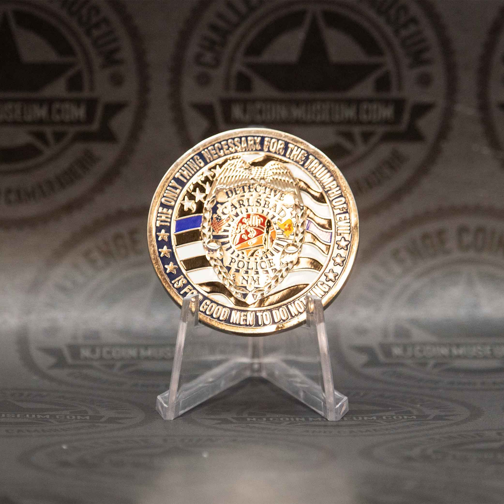The Detective Carlsbad, NM CSI challenge coin honors the precision, dedication, and investigative excellence of the Crime Scene Investigation team within the Carlsbad Police Department. We invite you to stop in anytime and see this Beautiful Museum! Click HERE for hours and directions. Have a challenge coin we may not have? Bring it in and