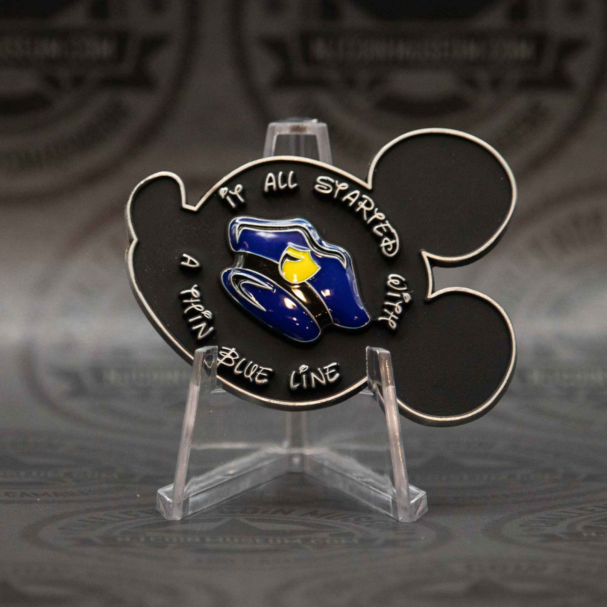 The Disney Minnie Mouse “It All Started With a Thin Blue Line” challenge coin is a heartfelt tribute that blends beloved Disney charm with deep respect for law enforcement. Featuring Minnie Mouse proudly adorned with a thin blue line motif, this unique coin symbolizes the strength, compassion, and service of those who wear the badge.