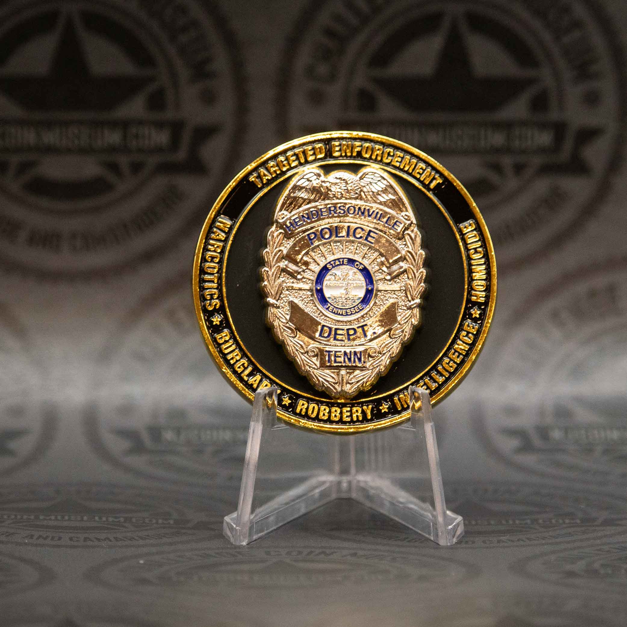 The Hendersonville Police Department’s Targeted Enforcement Task Force challenge coin symbolizes the department’s proactive approach to combatting crime and enhancing public safety in Hendersonville, Tennessee. This specialized unit collaborates with neighboring agencies to address specific crime trends, such as vehicle burglaries and thefts, often linked to organized groups operating across multiple jurisdictions. We invite you
