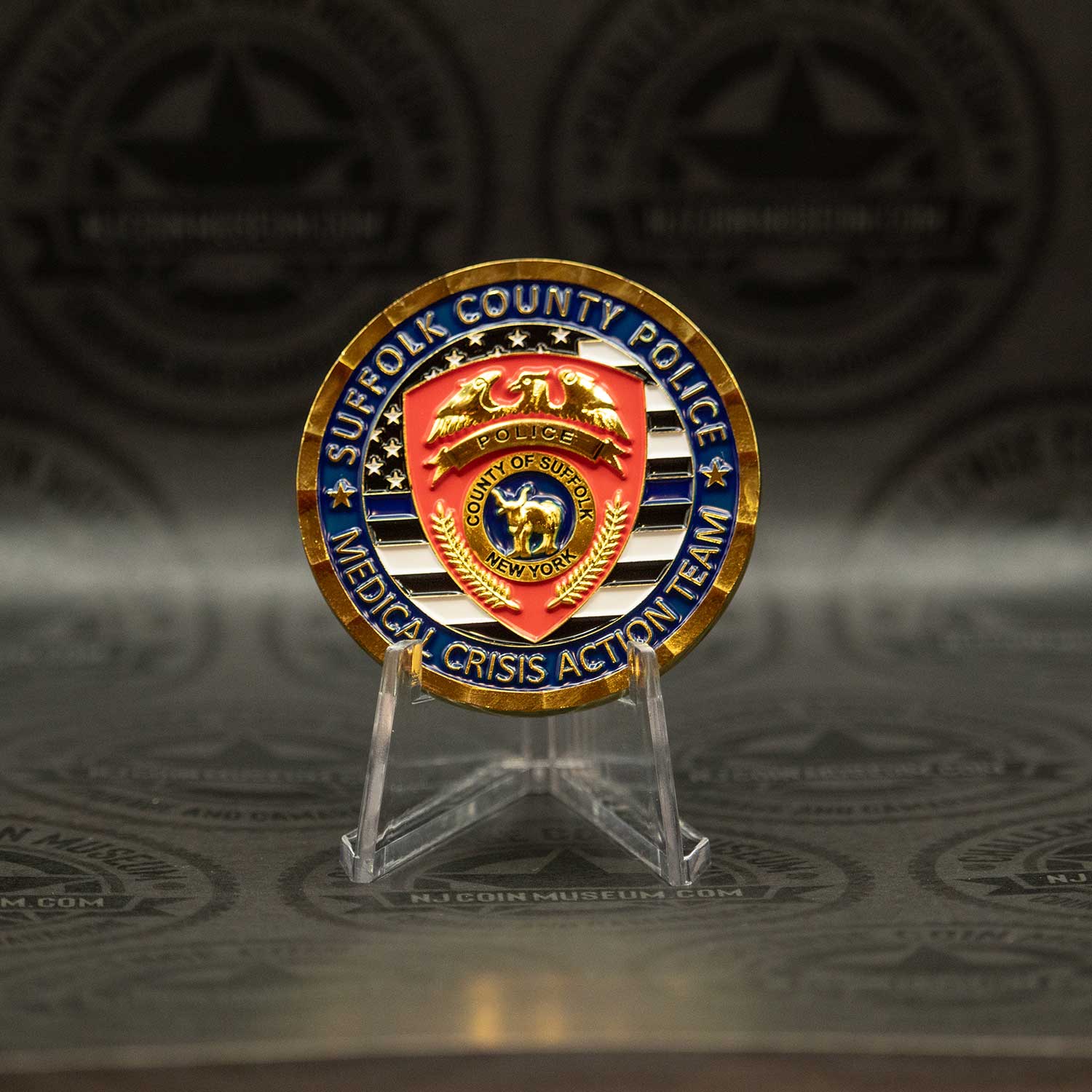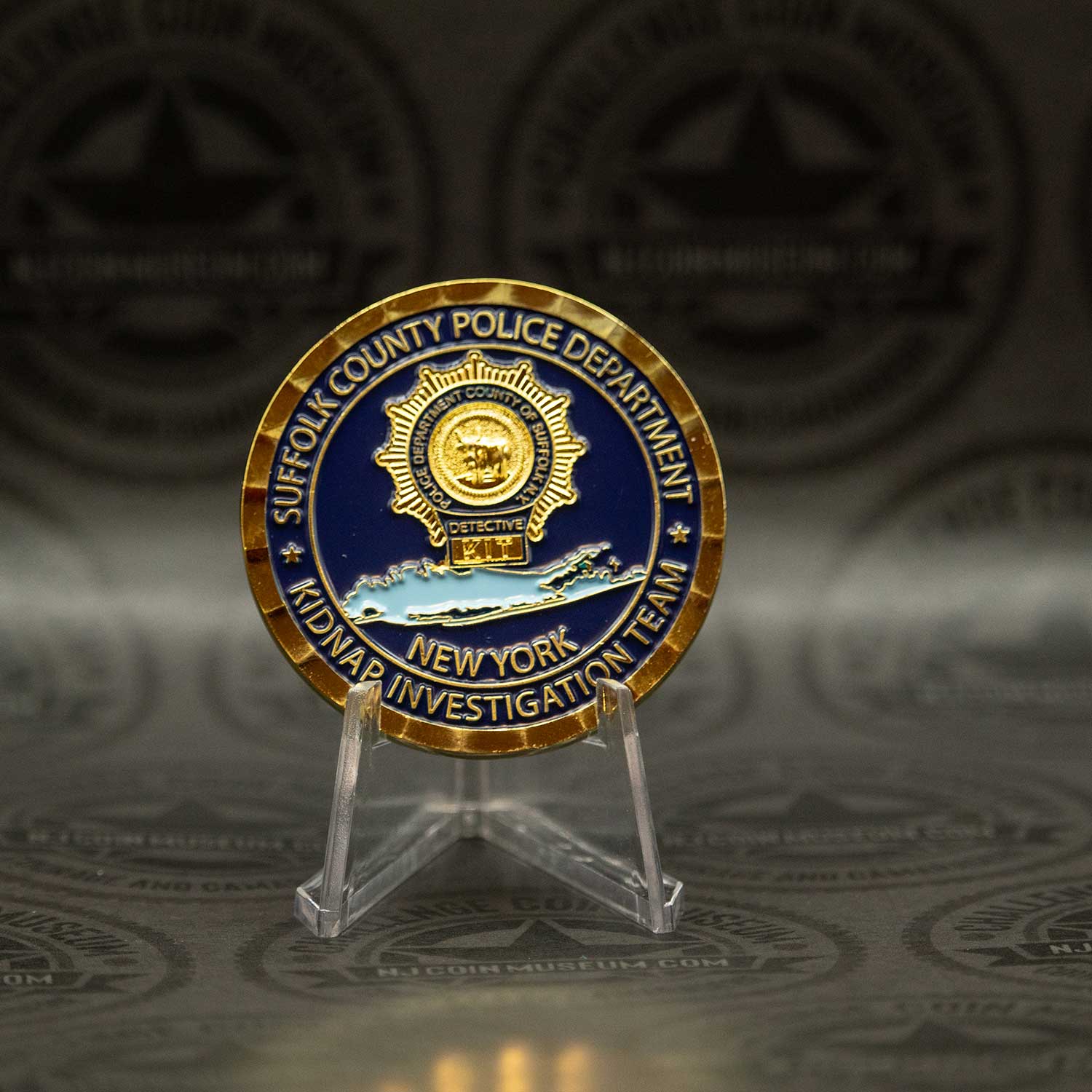 The Suffolk County Police Department has a tradition of issuing specialized challenge coins to honor the distinct roles and achievements of its various units. We invite you to stop in anytime and see this Beautiful Museum! Click HERE for hours and directions. Have a challenge coin we may not have? Bring it in and trade