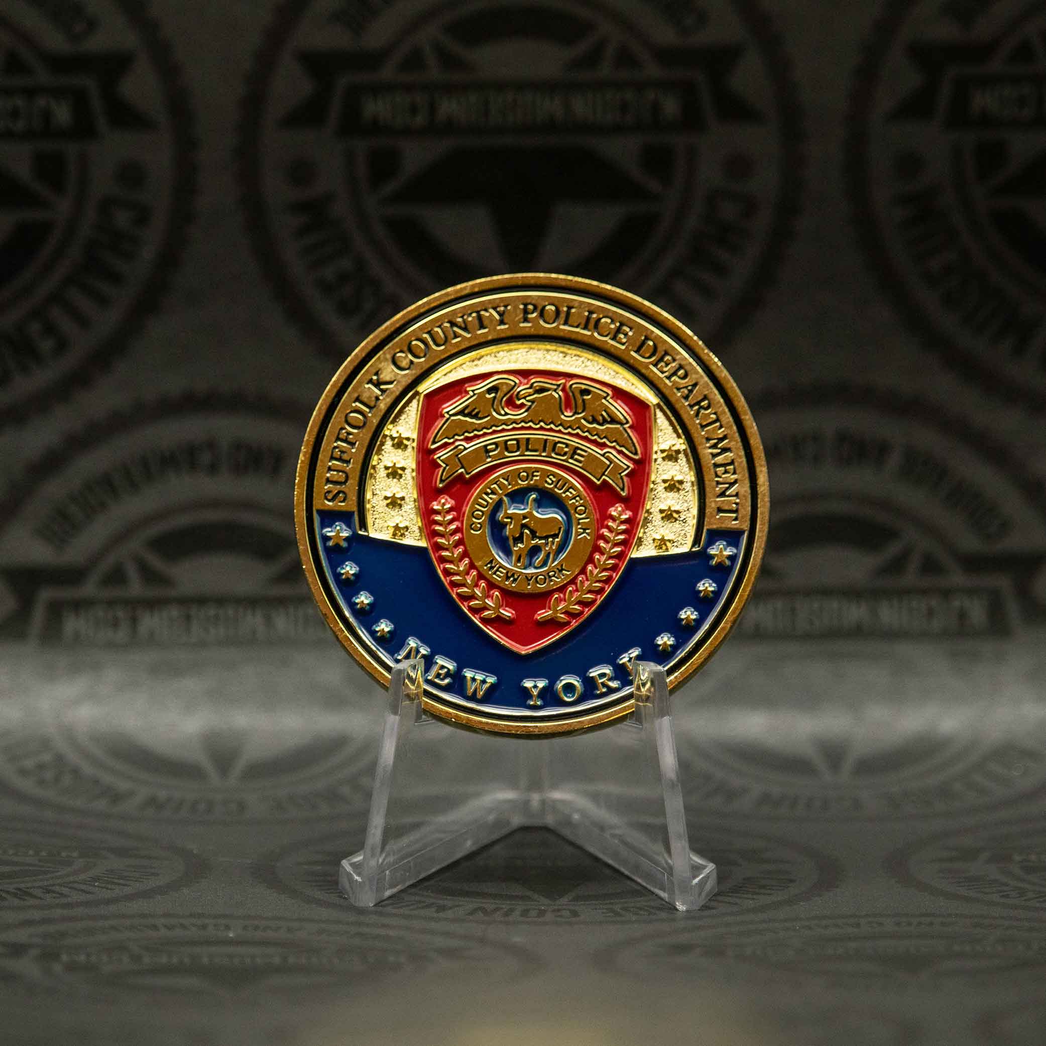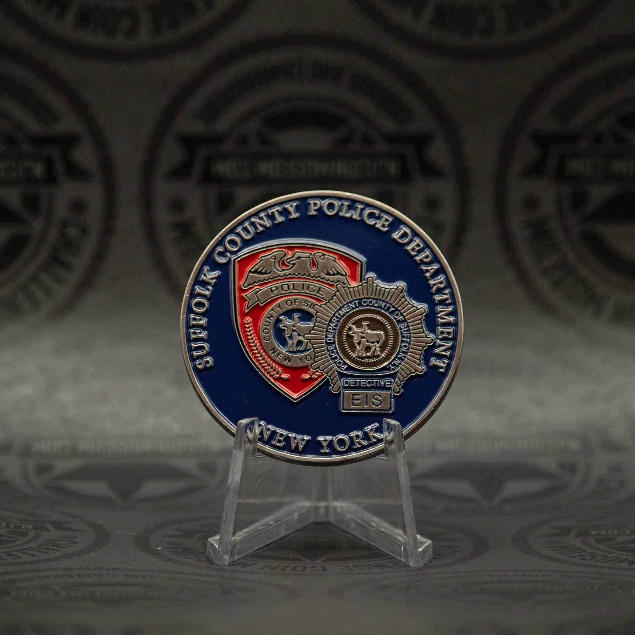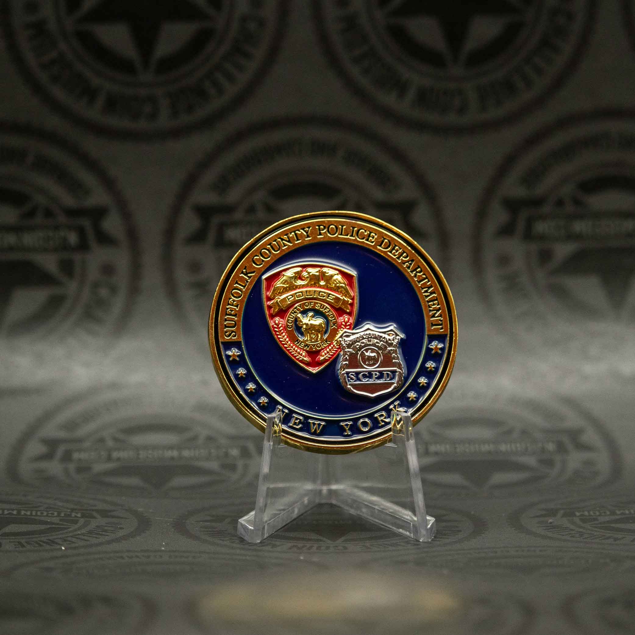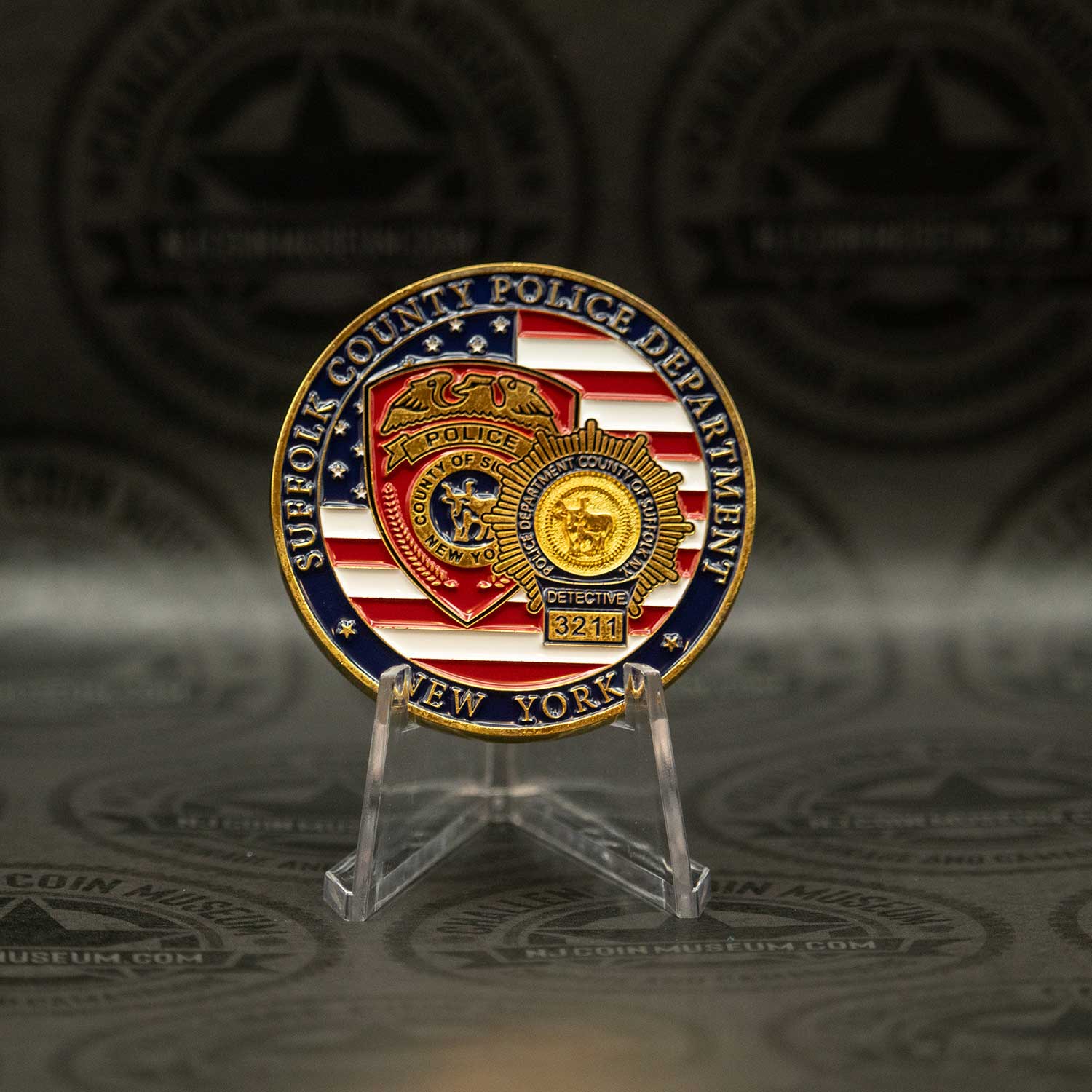 The Suffolk County Police Department Chief of Detectives challenge coin represents the leadership, experience, and dedication embodied by the highest-ranking official in the detective division. As the commanding force behind major investigations, the Chief of Detectives oversees units handling homicides, organized crime, narcotics, and other complex cases. We invite you to stop in anytime and