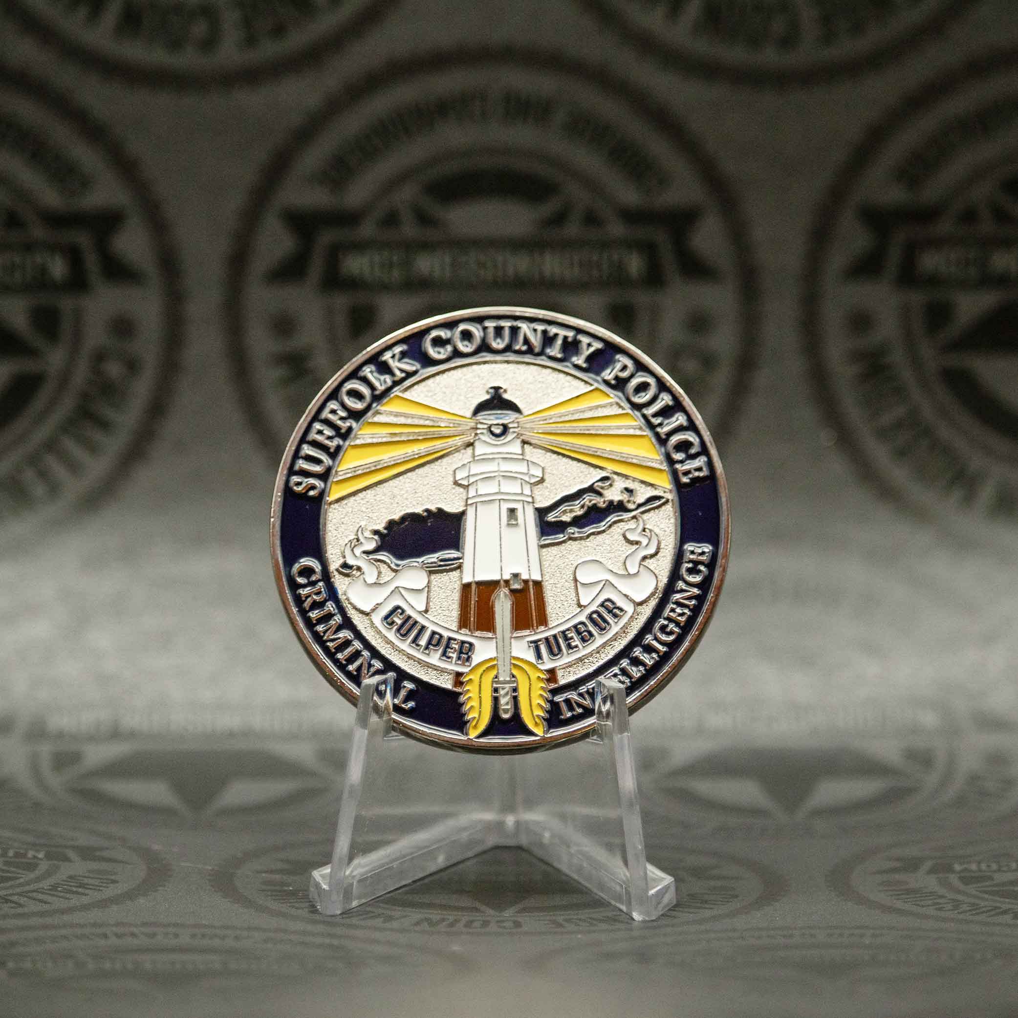 The Suffolk County Police Criminal Intelligence challenge coin symbolizes the critical and often behind-the-scenes work of the department’s intelligence unit. Tasked with gathering, analyzing, and disseminating actionable intelligence, these officers play a vital role in preventing crime, dismantling criminal networks, and supporting tactical and investigative operations. We invite you to stop in anytime and see