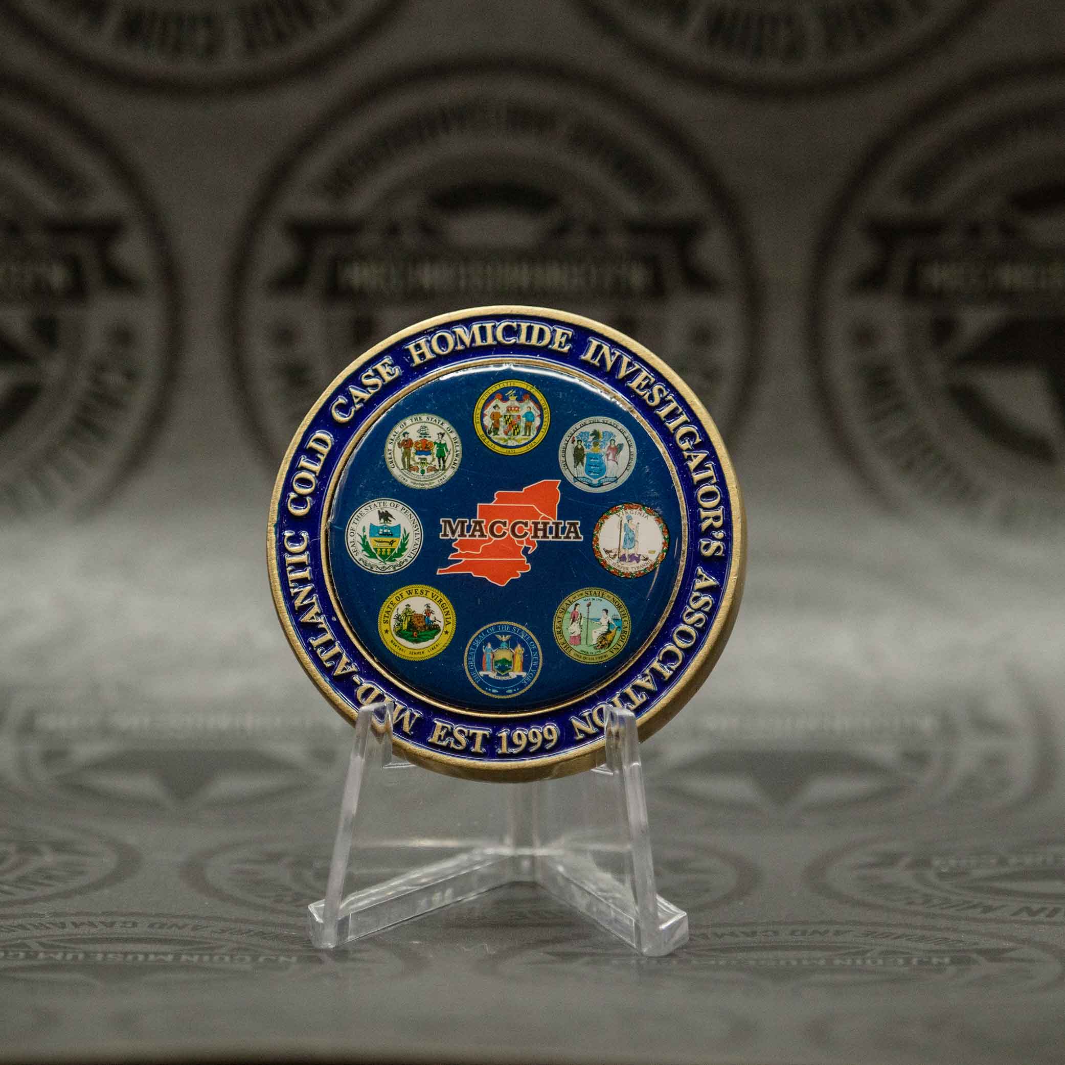 The Maryland Atlantic Cold Case Homicide Investigation Association challenge coin is a powerful symbol of dedication, perseverance, and justice for the forgotten victims and their families. Representing the tireless efforts of investigators, forensic experts, and partner agencies, the coin honors those committed to uncovering the truth and bringing resolution to long-unsolved cases. We invite you