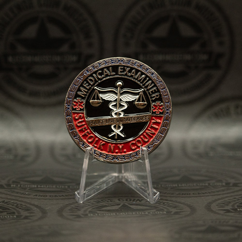 The Medical Examiner – Suffolk County, NY challenge coin stands as a distinguished emblem of scientific integrity, compassion, and public service. Representing the critical work of forensic pathologists, investigators, and support staff, the coin honors their dedication to uncovering the truth behind unexplained and unattended deaths with precision, respect, and professionalism. It symbolizes a commitment