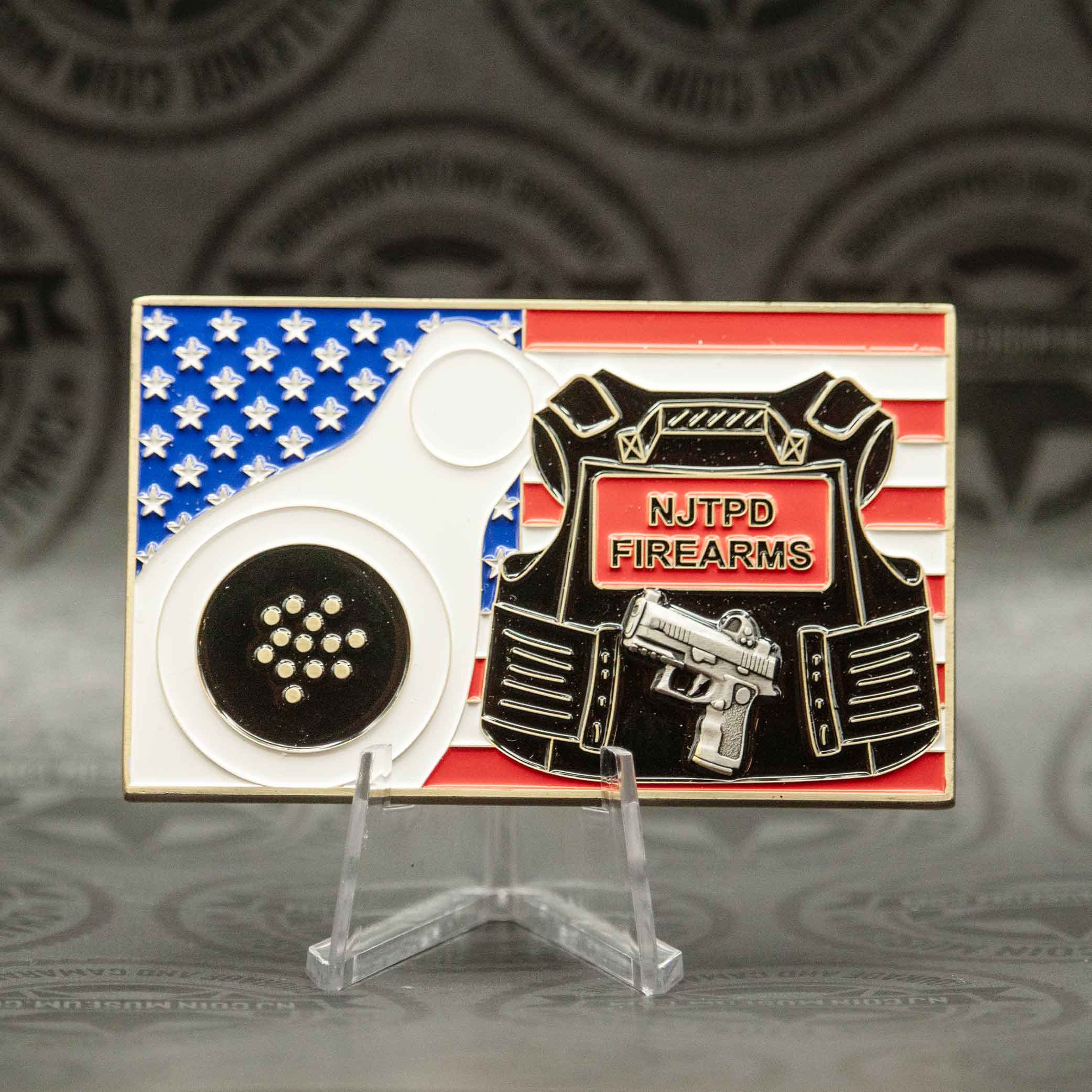 This coin was designed/created by our very own Vlad Vaval. Symbolic of his tenure as the New Jersey Transit Police Department Range Master, highlighting the need for consistency and accuracy with firearms. 13 well-placed rounds on target to represent 13 of his 25 years of service as a full-time Law Enforcement Trainer. We invite you